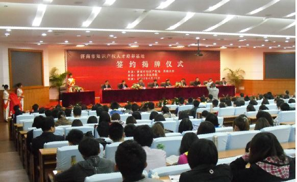 “济南市知识产权人才培养基地”是为了满足社会对知识产权人才的迫切需求,济南市在我校设立的一个人才培养平台,于2012年4月13日签约揭牌设立。