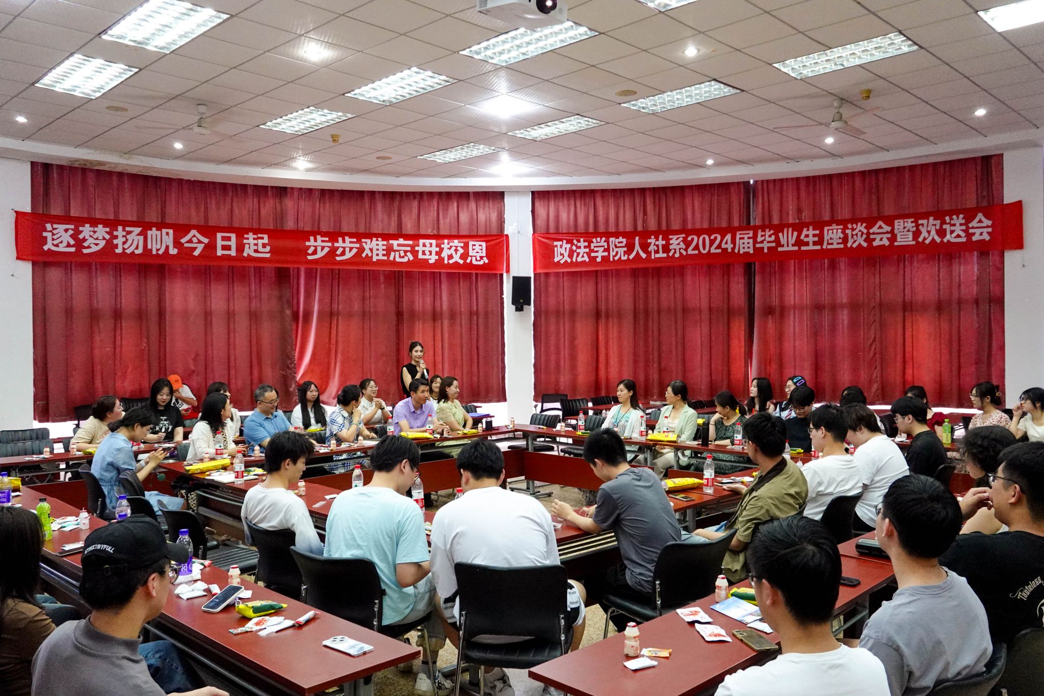6月4日下午,人力资源与社会保障系党支部隆重举办劳动与社会保障专业2024届毕业生座谈会暨欢送会。此次活动人社系部分教师代表与劳动与社会保障专业2024届全体毕业生齐聚一堂,毕业生王丹彤、隋汉武担任活动主持。政法学院党委书记李春慧,党委副书记、副院长李涛,团委书记刘晓娟、2020级辅导员赵朔应邀出席,共同见证这一重要时刻。
