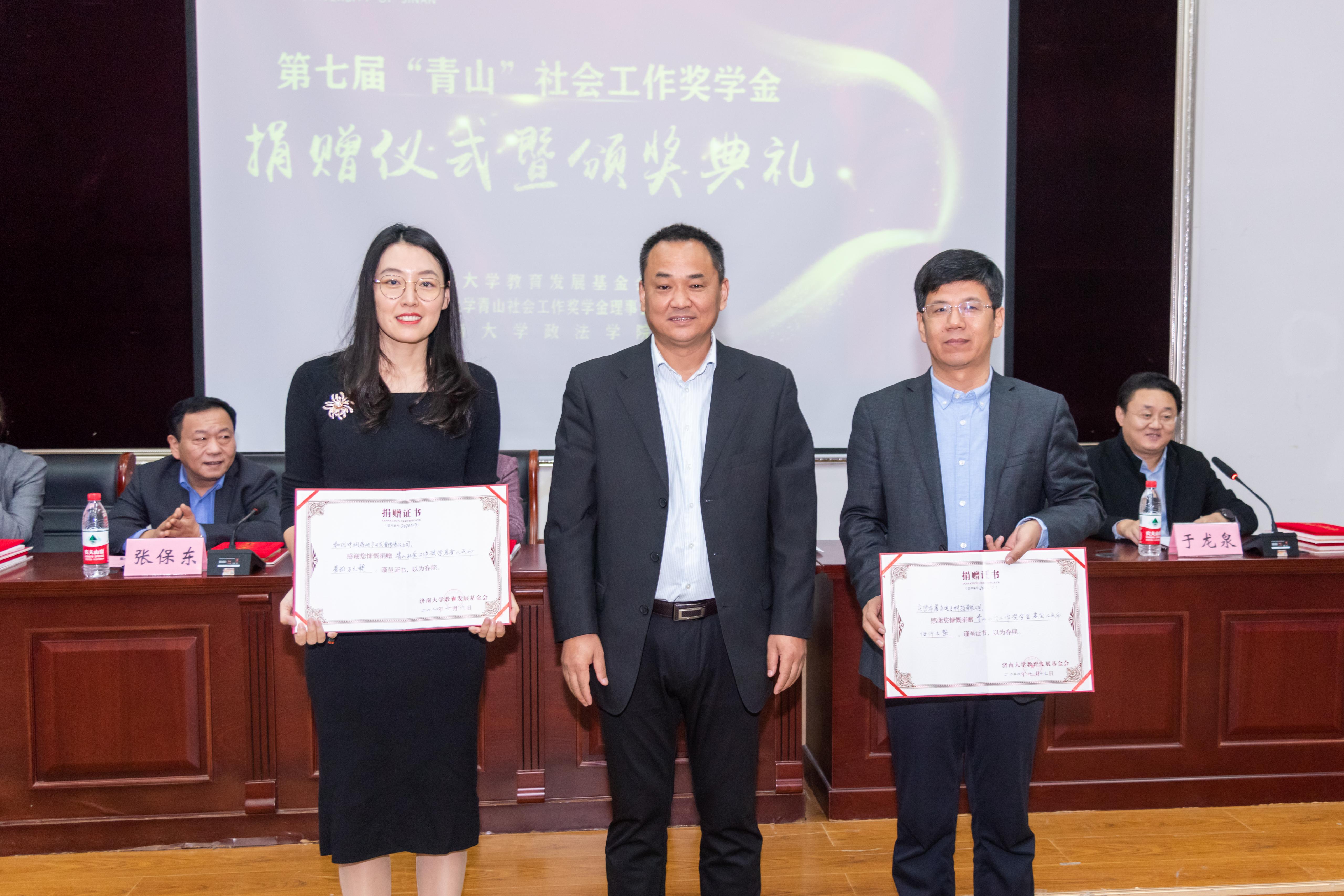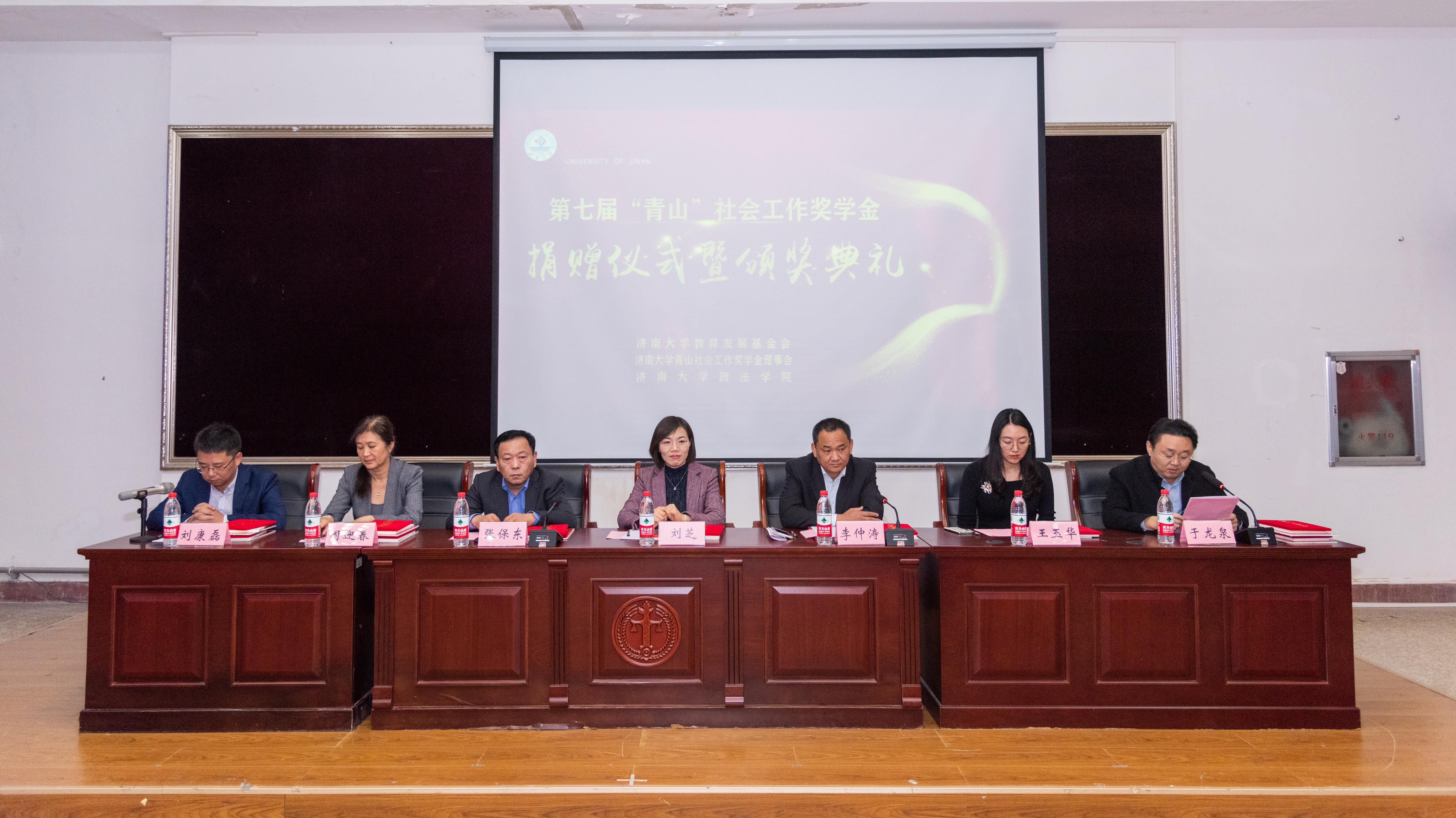 在学校72周年校庆到来之际,10月17日,济南大学第七届“青山”社会工作奖学金捐赠仪式暨颁奖典礼在政法学院举办。济南大学“青山”社会工作奖学金理事会理事,学校学生工作处、合作发展处、政法学院负责同志,政法学院师生代表、校友代表出席了活动。