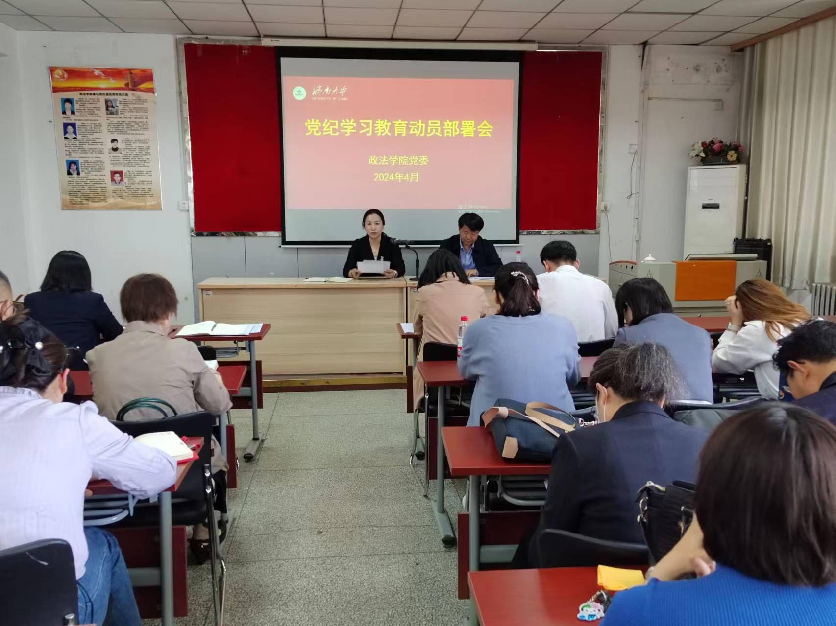 4月16日,为深入学习贯彻习近平总书记关于党纪学习教育的重要讲话和重要指示精神,认真贯彻落实学校党委关于开展党纪学习教育的部署安排,政法学院党委召开党纪学习教育动员部署会。学院领导班子成员,党支部书记,全体教工党员参加会议。会议由学院党委副书记、院长高功敬主持。