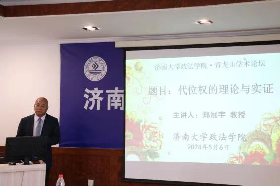 5月6日下午,政法学院青龙山学术论坛在第四教学楼428教室举行。本次论坛邀请东吴大学法学院院长郑冠宇教授作题为《代位权的理论与实证》的报告,论坛由法学系主任刘康磊教授主持,山东圣义律师事务所律师、政法学院师生共计70余人参加。