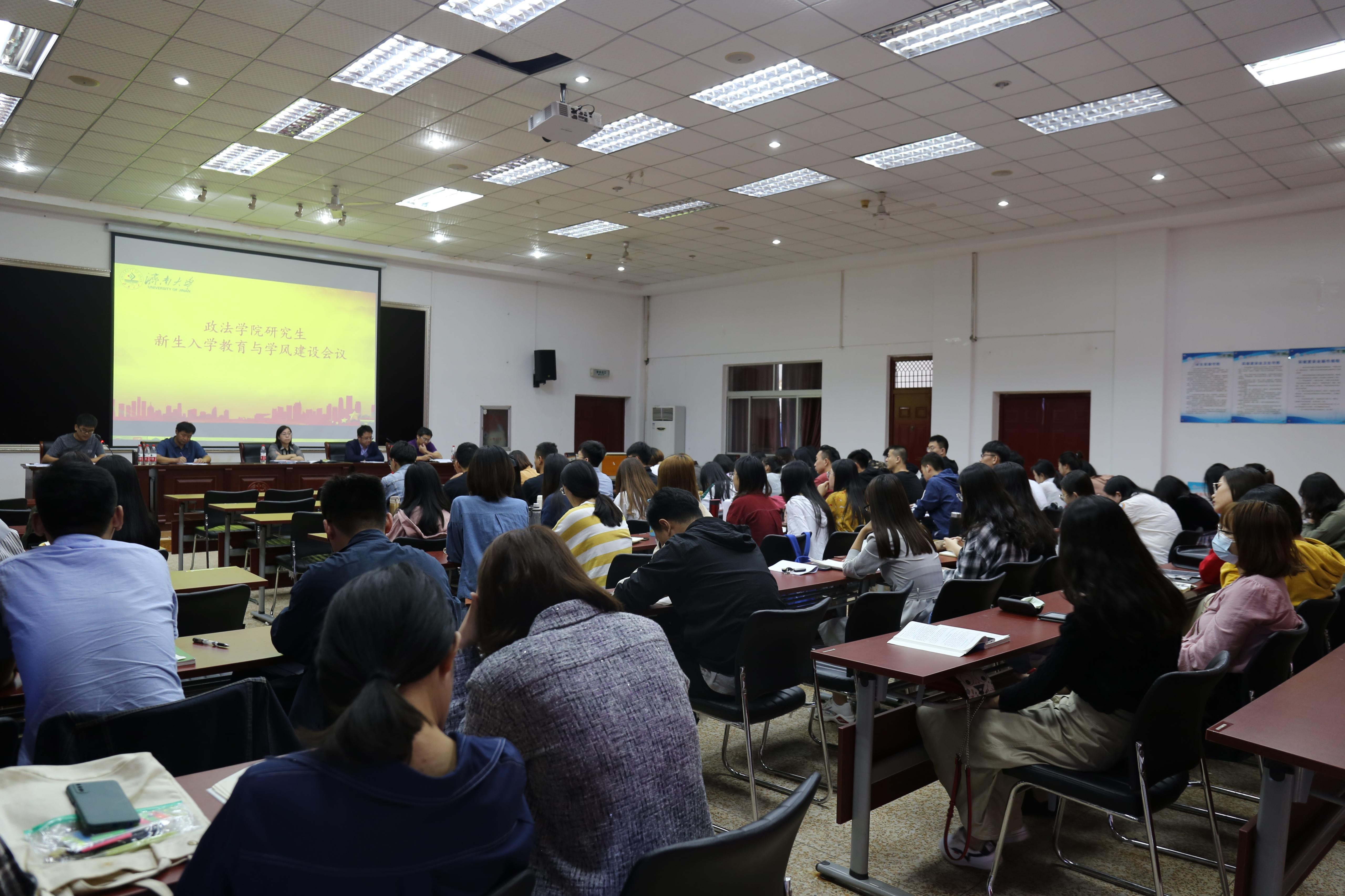 为进一步加强我院研究生学风建设,营造良好的学术氛围,9月30日上午,政法学院研究生新生入学教育与学风建设会议在4教7楼模拟法庭召开,政法学院社会学和法律硕士全体研究生参加会议。会议由高功敬副院长主持,学院院长梁丽霞、副院长刘康磊、研究生管理办公室主任张国栋、法律硕士管理办公室陈强出席会议。