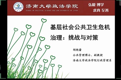 4月12日上午,我院举办新冠疫情下的社会治理线上系列讲座第二讲,讲座由政法学院胡艳蕾副教授主讲,讲座的题目为“基层社会公共卫生危机治理:挑战与对策”。政法学院副院长李慧明主持了线上讲座,政法学院师生100余人参与了线上交流。