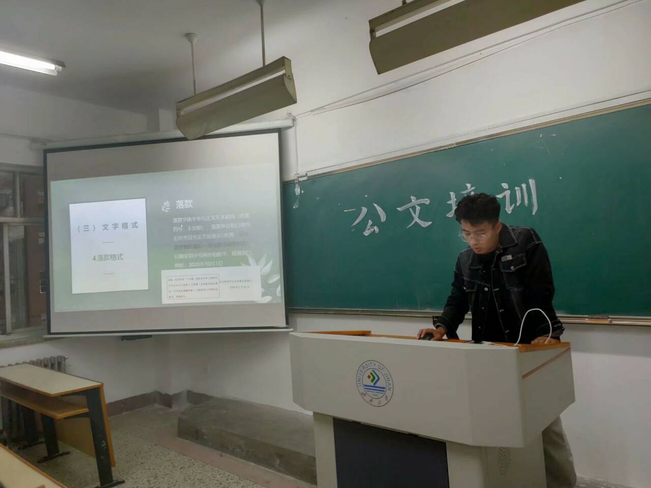 为提高新干事公文写作水平,加强新干事工作热情,10月27日晚7点,我院阳光先锋青年志愿者协会全体成员准时到达济南大学第4教学楼201教室,参加一年一度的公文培训活动,本次培训采用线上线下相结合的形式。