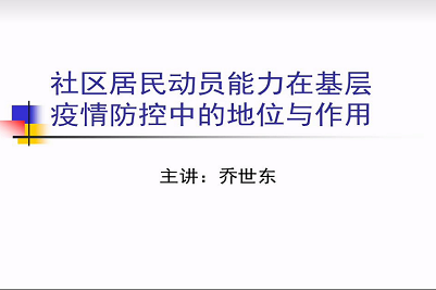 为做好疫情期间的防疫不松懈、学术不断线,拓宽师生学术视野,我院积极挖掘校内外学术资源筹措线上系列讲座。4月8日下午,新冠疫情下的社会治理线上系列讲座第一期顺利开讲,讲座由第二届齐鲁和谐使者、济南市民政局特聘专家、我院社会学系乔世东教授主讲,讲座题目为《社区居民动员能力在基层疫情防控中的地位与作用》。讲座由学院副院长李慧明主持,学院部分老师、研究生、本科生近百余人在线观看和互动。