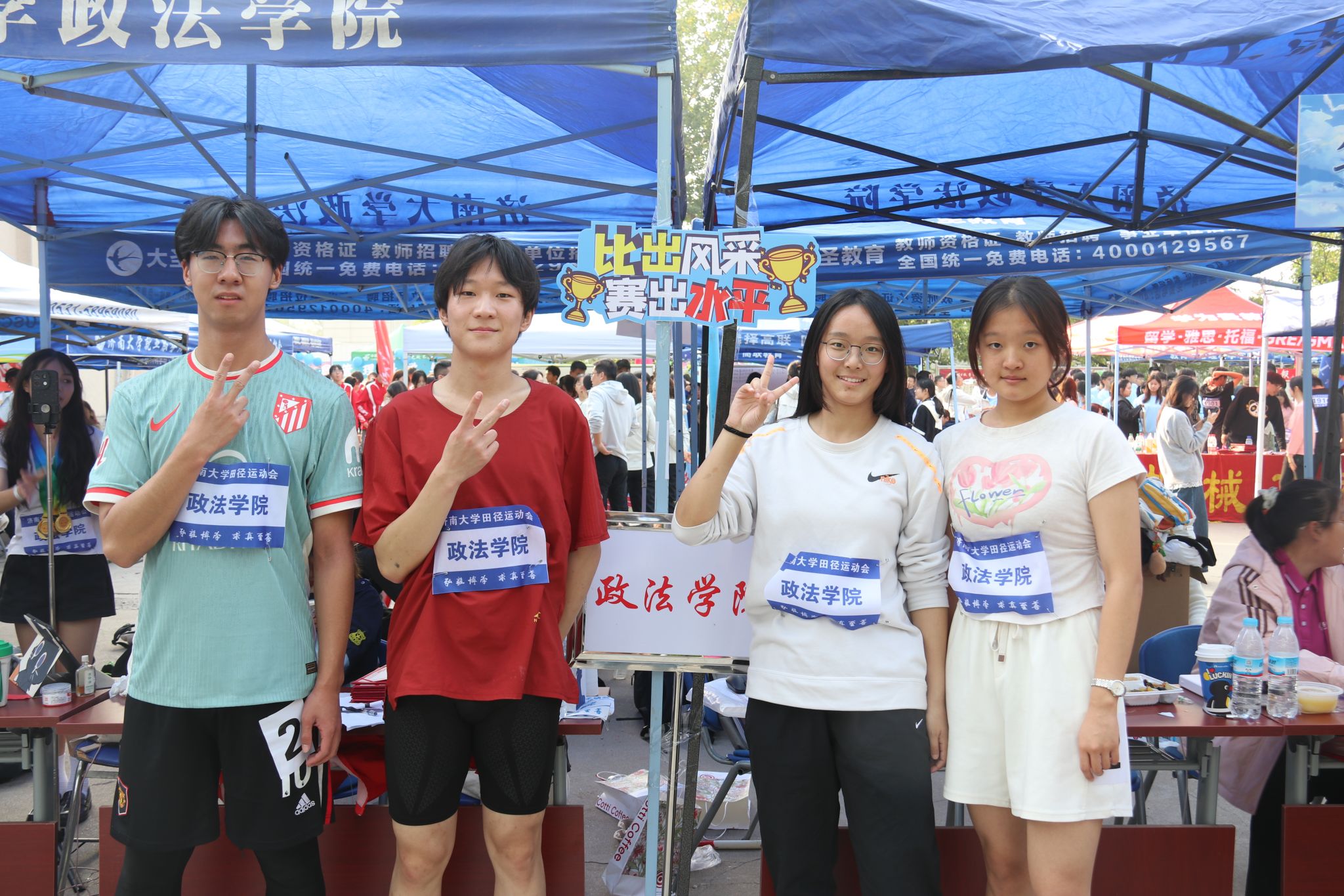 接力棒在他们之间传递,每一次交接都显得那么默契与迅速。观众们的加油声、欢呼声此起彼伏,为他们加油打气。每个人都为了政法学院的荣誉与胜利而奋力拼搏,努力争取每一个冲刺的机会。