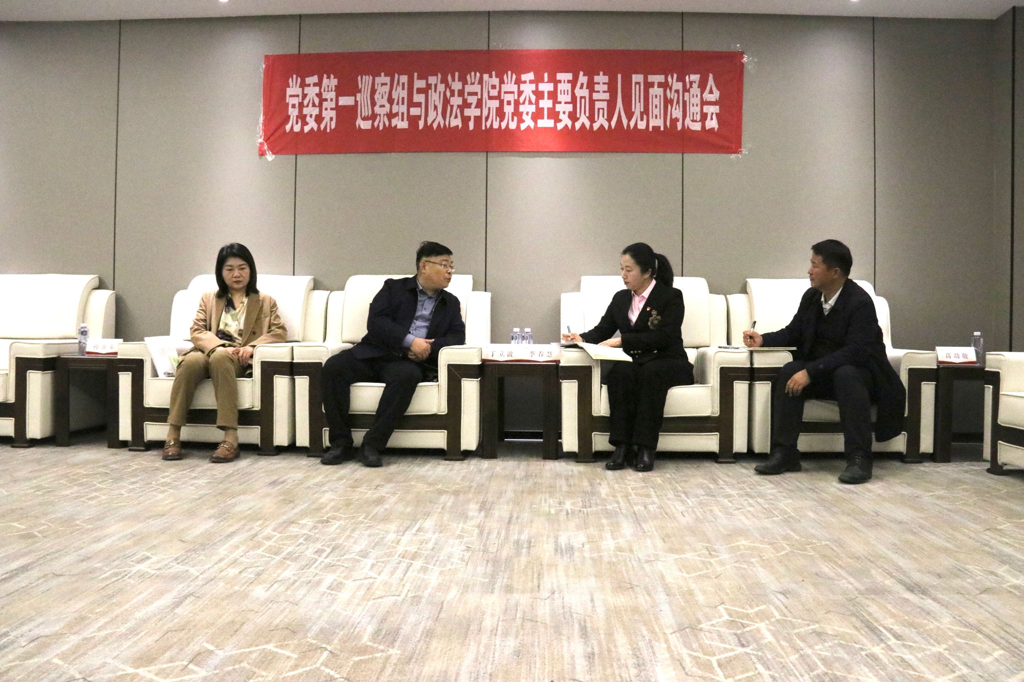 会前,按照巡察工作安排,党委第一巡察组召开见面沟通会。丁立波通报了巡察任务和工作安排,孙菲菲就做好巡察工作提出要求。李春慧代表政法学院党委表示坚决拥护学校党委的决定,真诚欢迎巡察组进驻,将认真做好各项准备,全力配合相关工作。