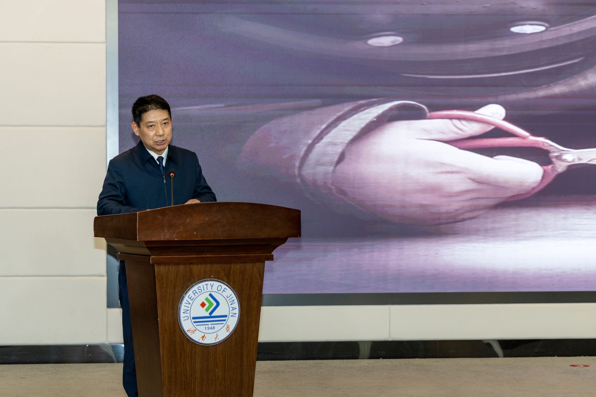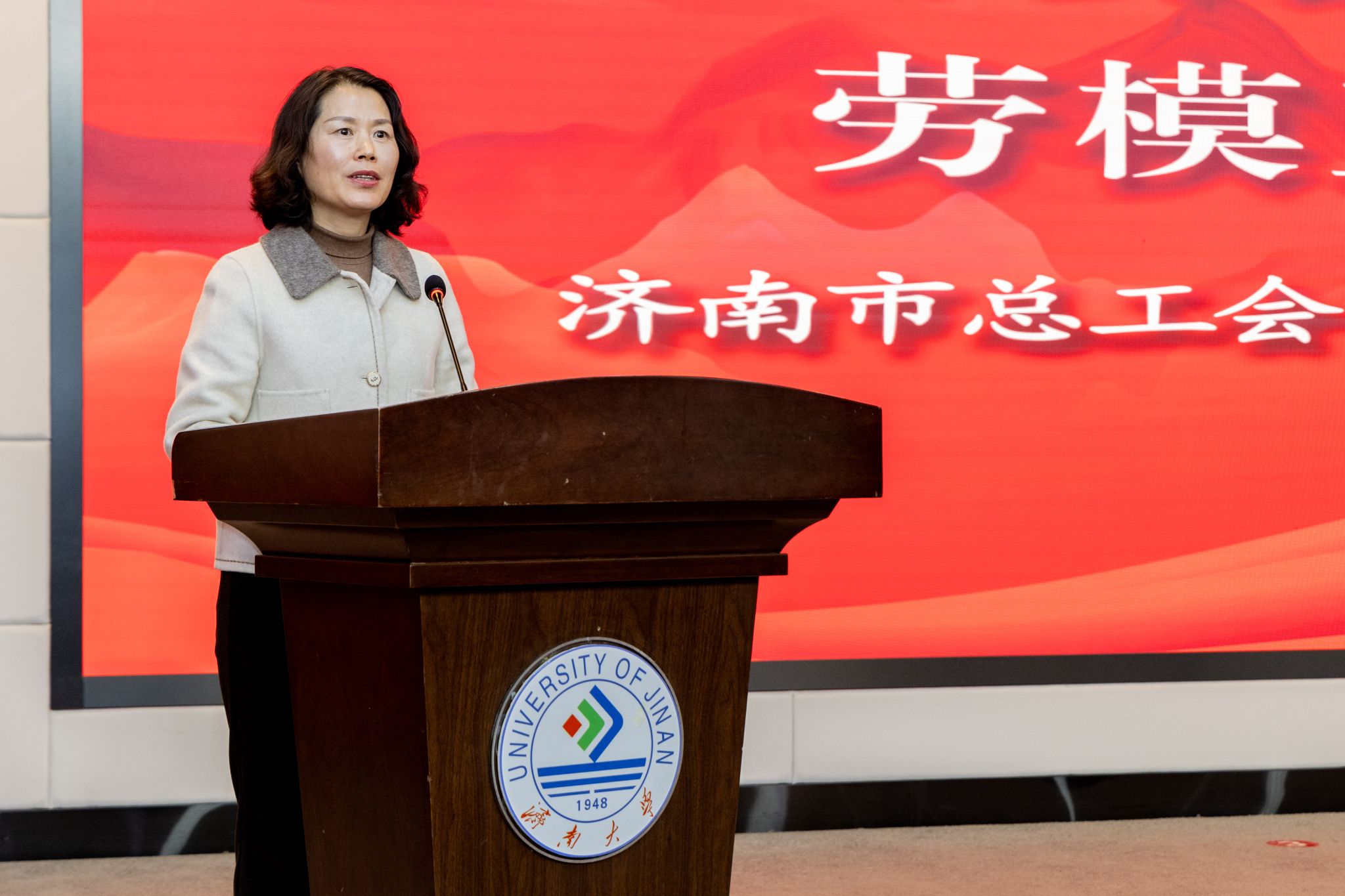 李强在致辞中向宣讲团一行表示欢迎,向劳模工匠致以崇高敬意,介绍了济南大学和政法学院的基本情况。他表示,劳模工匠宣讲活动是济南大学与济南市校地融合赋能全环境立德树人的生动实践,学校高度重视传承弘扬劳模精神、劳动精神、工匠精神,坚持营造学习劳模、关爱劳模、争当劳模的良好氛围。他要求同学们在聆听中感悟精神伟力、汲取榜样力量、树立劳动观念,刻苦钻研、砥砺奋进,做伟大事业的建设者、文明风尚的倡导者、敢于追梦的奋斗者。