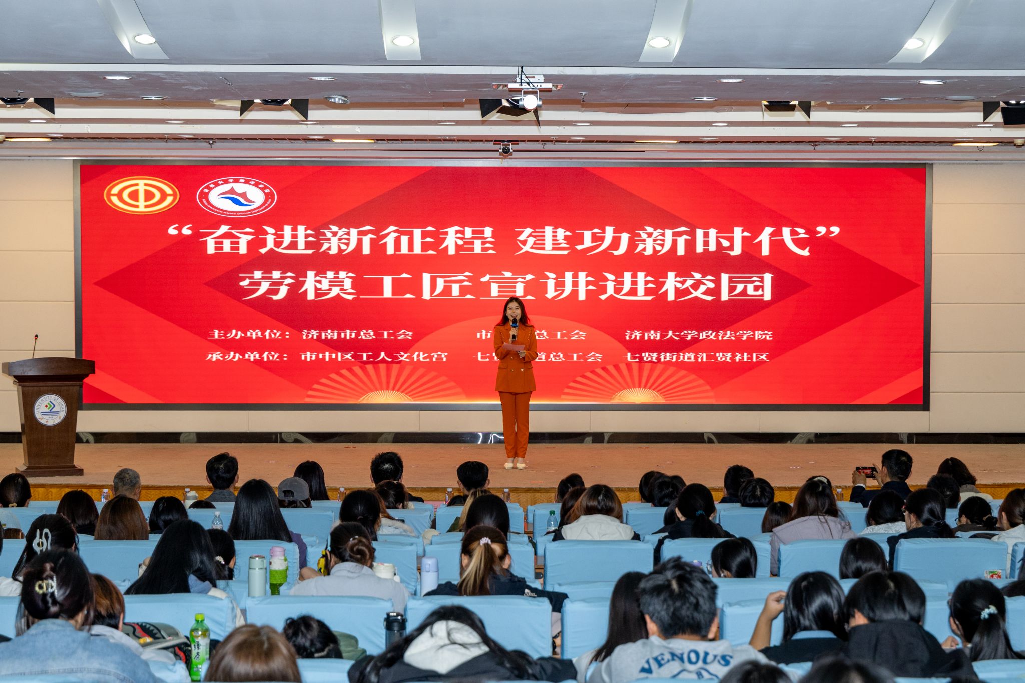 为深入贯彻落实党的二十届三中全会精神,学习贯彻习近平总书记重要讲话精神,深刻认识和大力弘扬劳模精神、劳动精神、工匠精神,11月6日,政法学院联合济南市市中区总工会、七贤街道总工会邀请济南市总工会“筑梦泉城”劳模工匠事迹宣讲团来我校开展“奋进新征程 建功新时代”劳模工匠宣讲活动。党委常委、副校长李强,济南市总工会宣教部二级调研员张昭力,党委学生工作部(处)部(处)长卢旺,政法学院党委书记李春慧,市中区总工会、七贤街道总工会、政法学院相关人员参加活动。活动由社科处处长、政法学院院长、济南市总工会副主席(兼职)高功敬主持。
