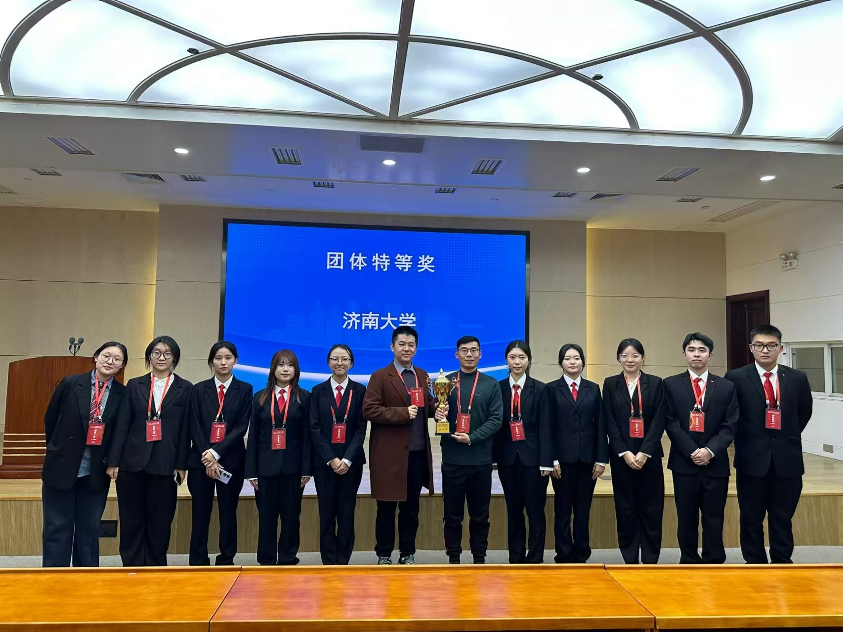 11月24日,2024年“众成清泰杯”山东省大学生模拟法庭比赛在山东省高级人民法院落下帷幕。本届济南大学代表队由李戈、赵宗涛老师带队指导,何欣芮、韩佳悦、崔慧琳、王梓力、兰汝林、巩昱杰、胡岷蛟7名同学参赛,经过激烈的角逐,凭借同学们出色的表现,我院代表队最终以全胜的战绩问鼎本届杯赛并荣获特等奖,实现了学院在该项赛事中的历史性突破,胡岷蛟同学获“最佳辩手”奖。