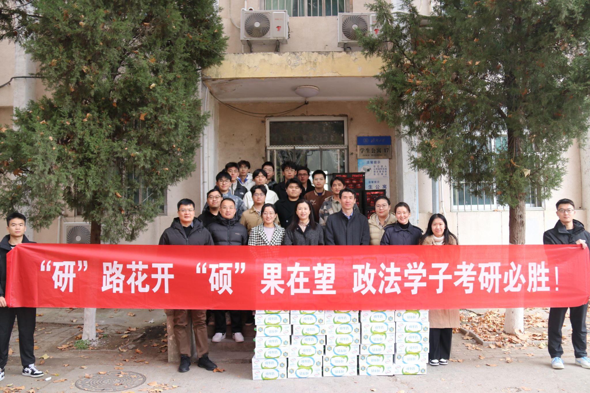 一直以来,政法学院始终紧紧围绕立德树人根本任务,高度重视学生的考研工作,积极组织多样化的考研经验分享会、考研学习指导、学风建设月以及考研慰问等系列活动,多举措为考研学生提供指导和服务保障工作。志不求易者成,事不避难者进,祝愿每一位考研的莘莘学子都能够抵达理想院校,奔向人生下一个征程!