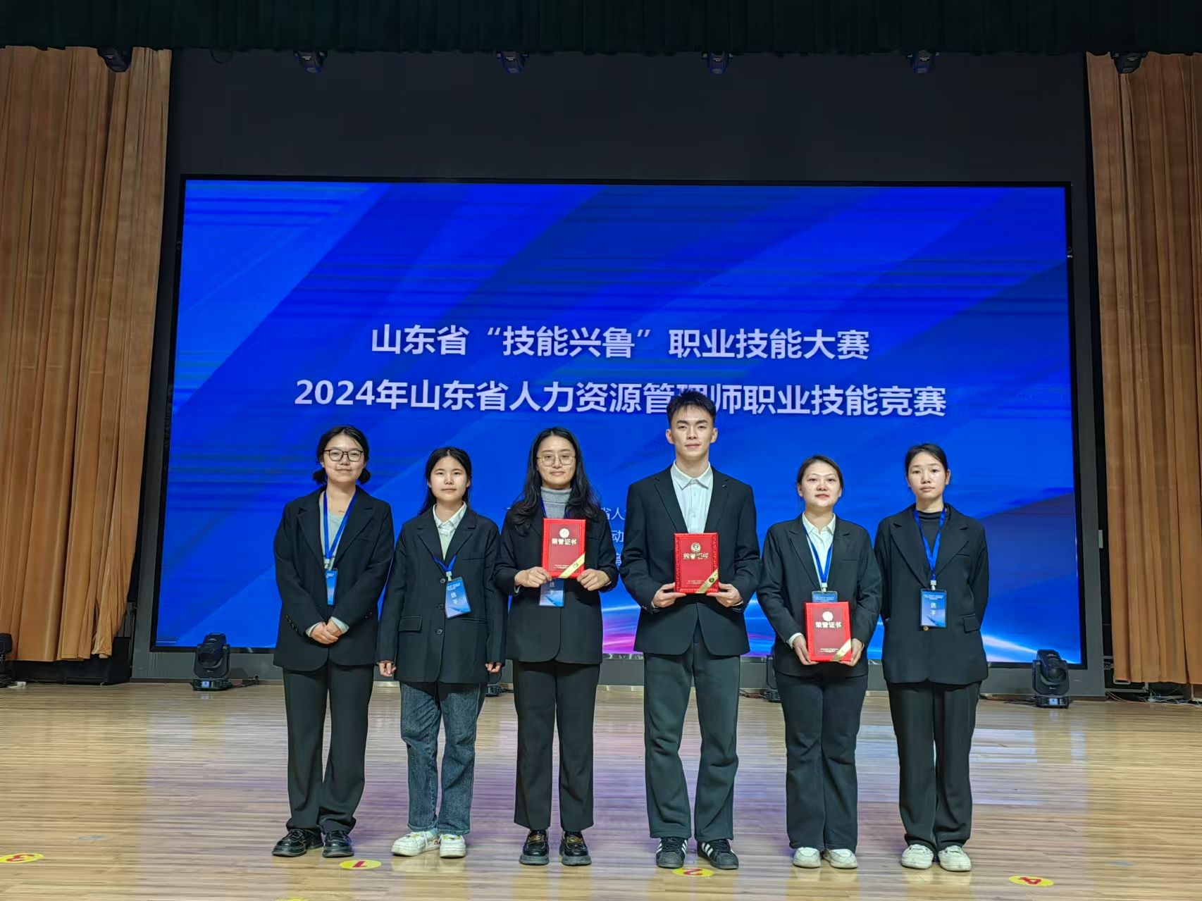 2024年12月4日至5日,山东省“技能兴鲁”职业技能大赛——2024年山东省人力资源管理师职业技能竞赛决赛在山东劳动职业技术学院圆满落幕。我院人力资源与社会保障系刘雪、刘建花老师指导的劳动与社会保障专业22级何昕怡、仇悦、吴永琪同学组成的“泉心泉意队”与余丹、郑博超、余玉洁同学组成的“慧眼识珠队”,在激烈的角逐中脱颖而出,分别获学生组一等奖、二等奖,刘建花老师获教职工组三等奖。