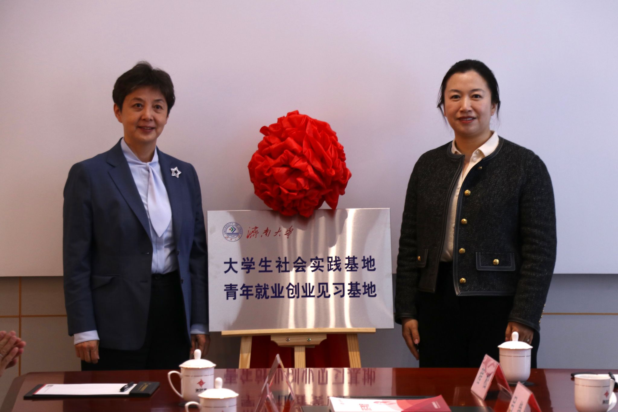 李春慧和阮师漫为“大学生社会实践基地”“青年就业创业见习基地”揭牌。