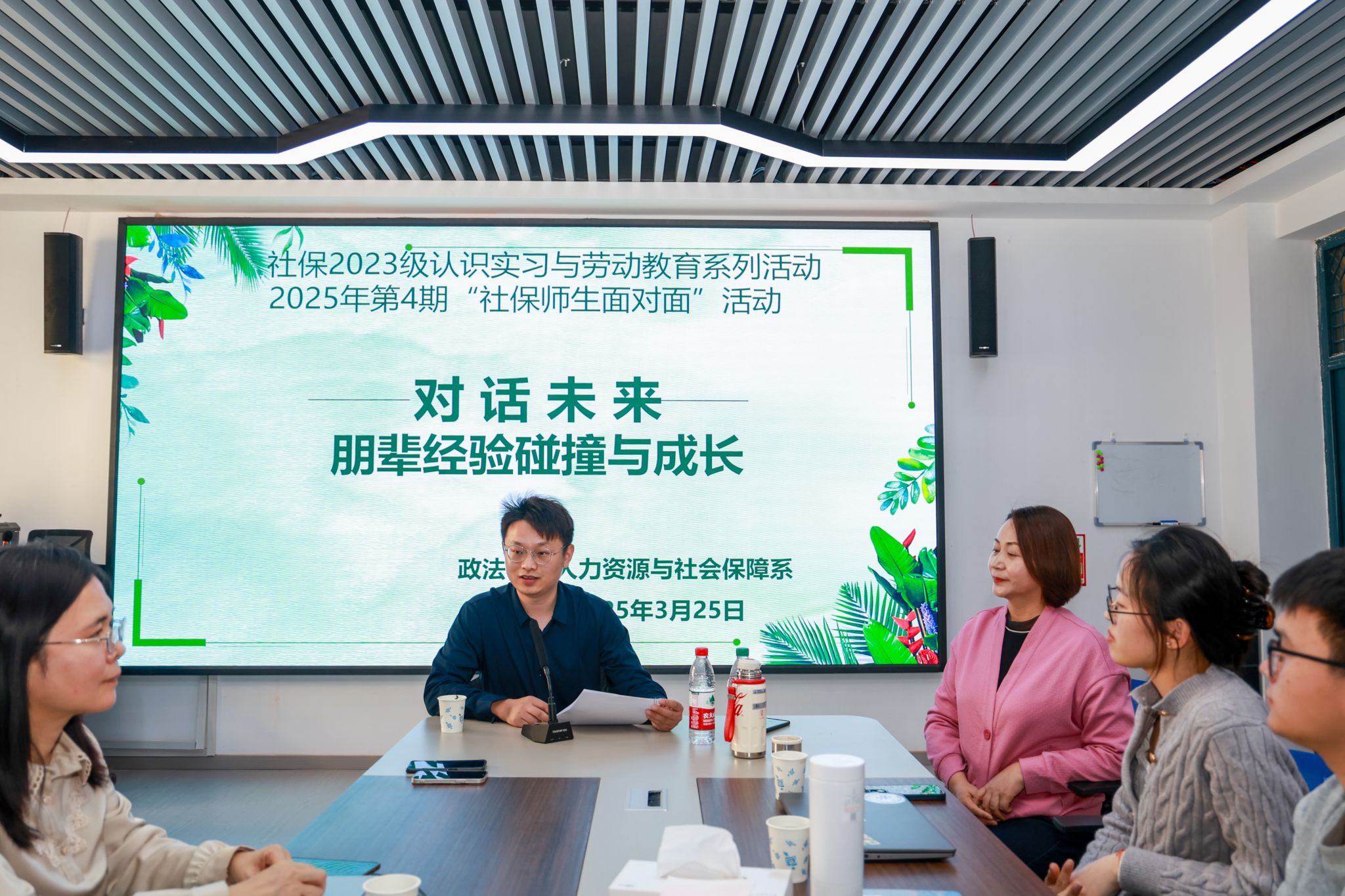 为帮助学生更好地理解专业,规划职业发展,提升就业竞争力,2025年3月25日下午,我院于第四教学楼413教室成功举办了“对话未来:朋辈经验对撞与成长”优秀朋辈专业分享会,也是2025年第4期“社保师生面对面”活动。政法学院部分教师、2023级劳动与社会保障专业学生出席本次分享会。