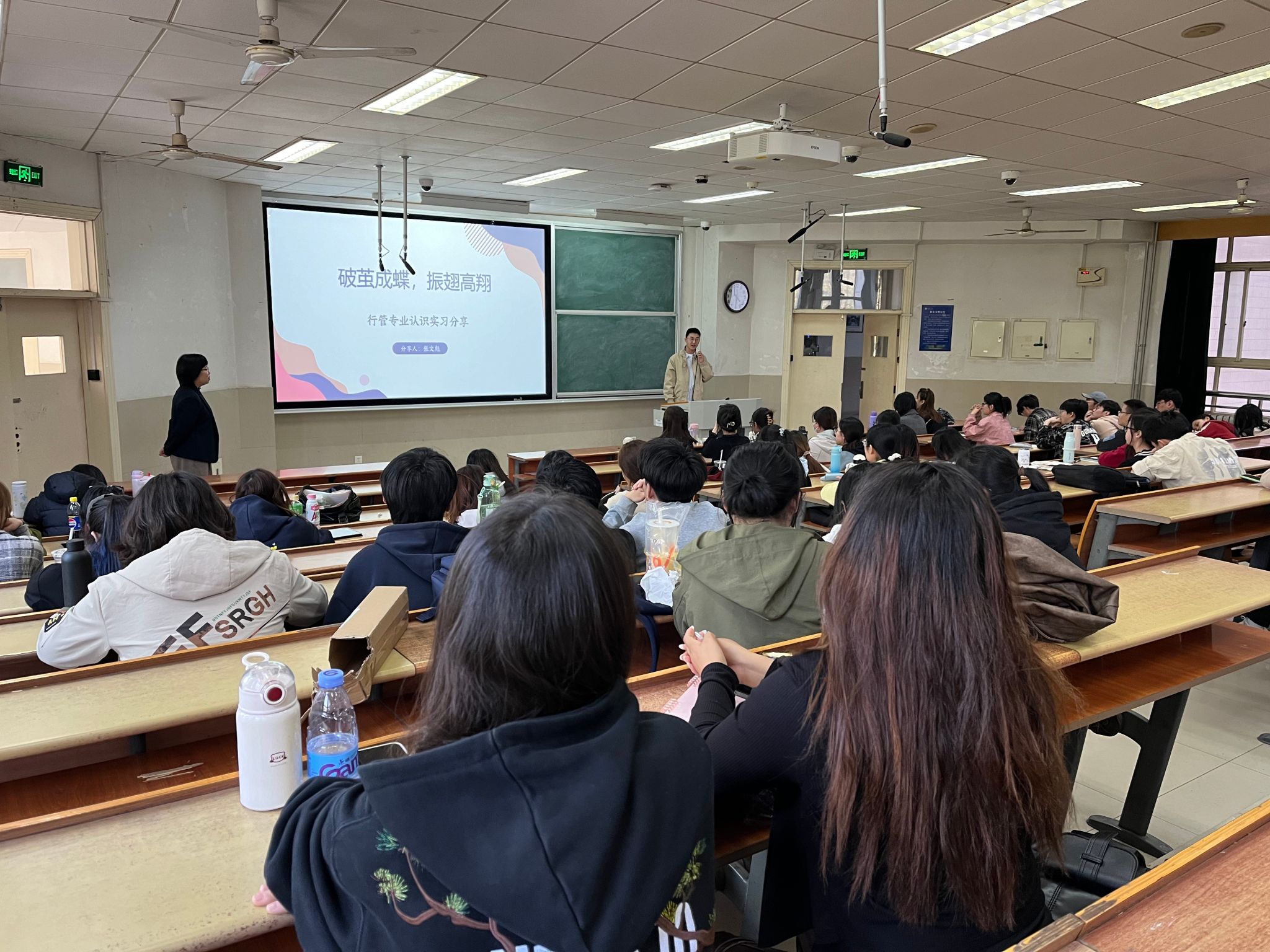 为确保本次实习工作扎实开展、取得实效,让同学们习有所获。行政管理系精心筹备,于4月2日下午在第十一教学楼2202教室召开实习动员会。行政管理系副主任韩芳老师进行了动员和部署,行管2021级学生代表高霞、行管2022级学生代表张文彪、孟冉三位同学以及2023级全体同学参加了本次动员会。