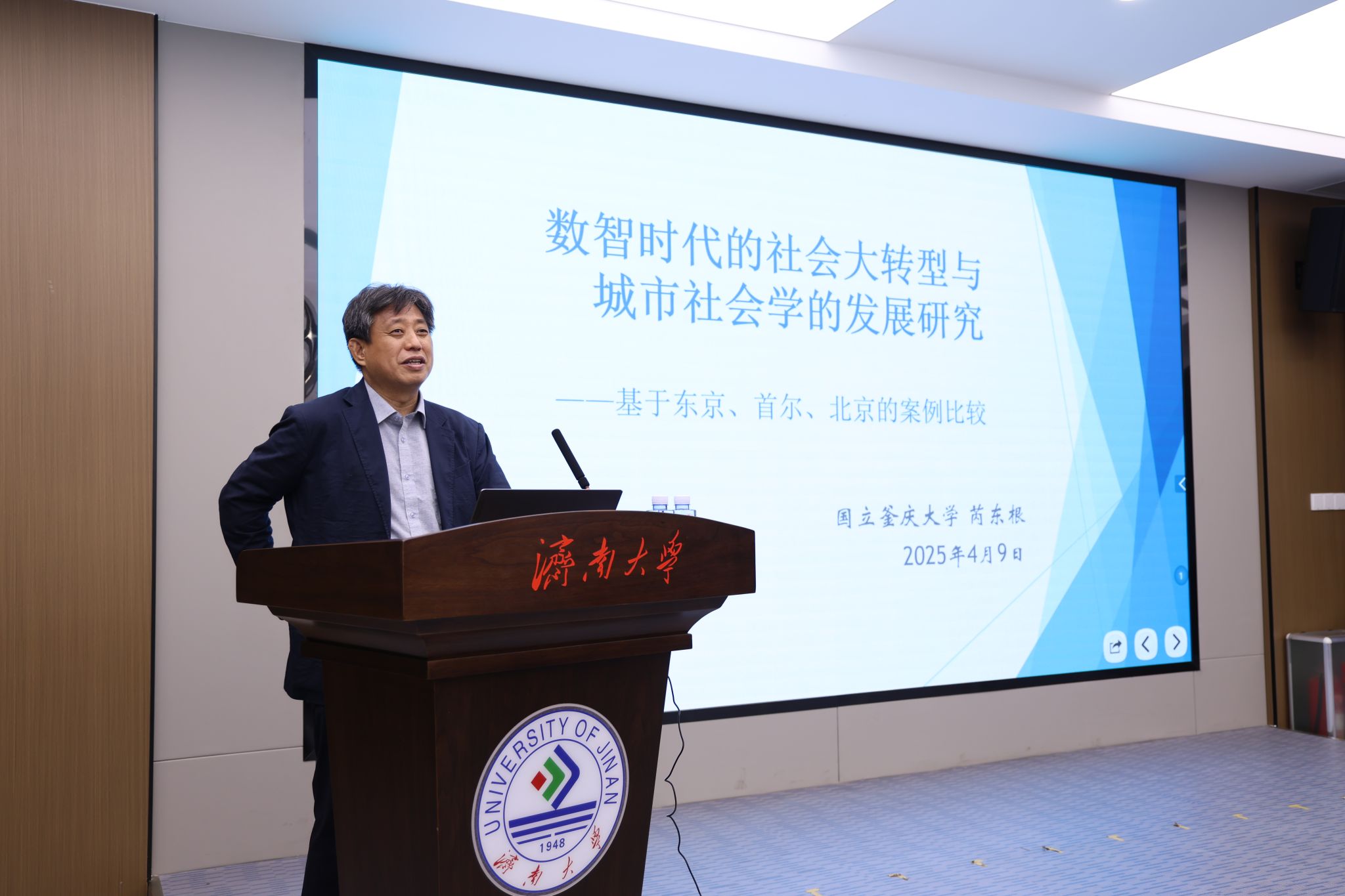 2025年4月9日下午,政法学院青龙山学术论坛在第五报告厅成功举办,本次学术论坛特邀东亚社会学会秘书长、韩国国立釜庆大学教授、博士生导师芮东根教授作题为《数智时代的社会大转型与城市社会学的发展研究》的学术报告,报告由社科处处长、政法学院院长高功敬教授主持,政法学院教师及学生共计八十余人参加。