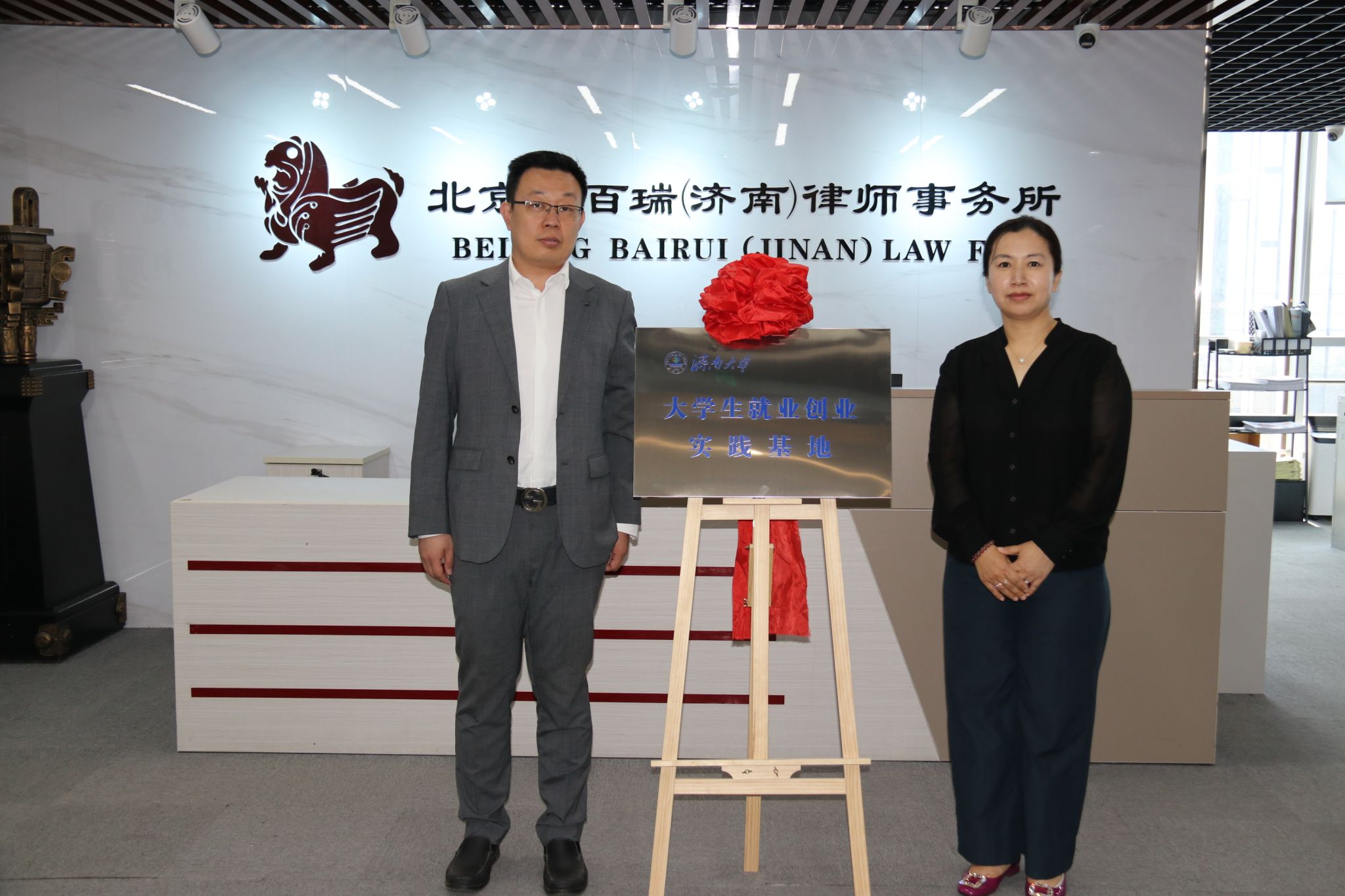 在与会人员的共同见证下,李涛与崔建国分别代表双方签署合作协议;李春慧与王晓明共同为“济南大学大学生就业创业实践基地”“济南大学毕业生就业基地”揭牌。根据协议,双方将在学生实习、就业指导、案例研究、学术交流等领域开展常态化合作。