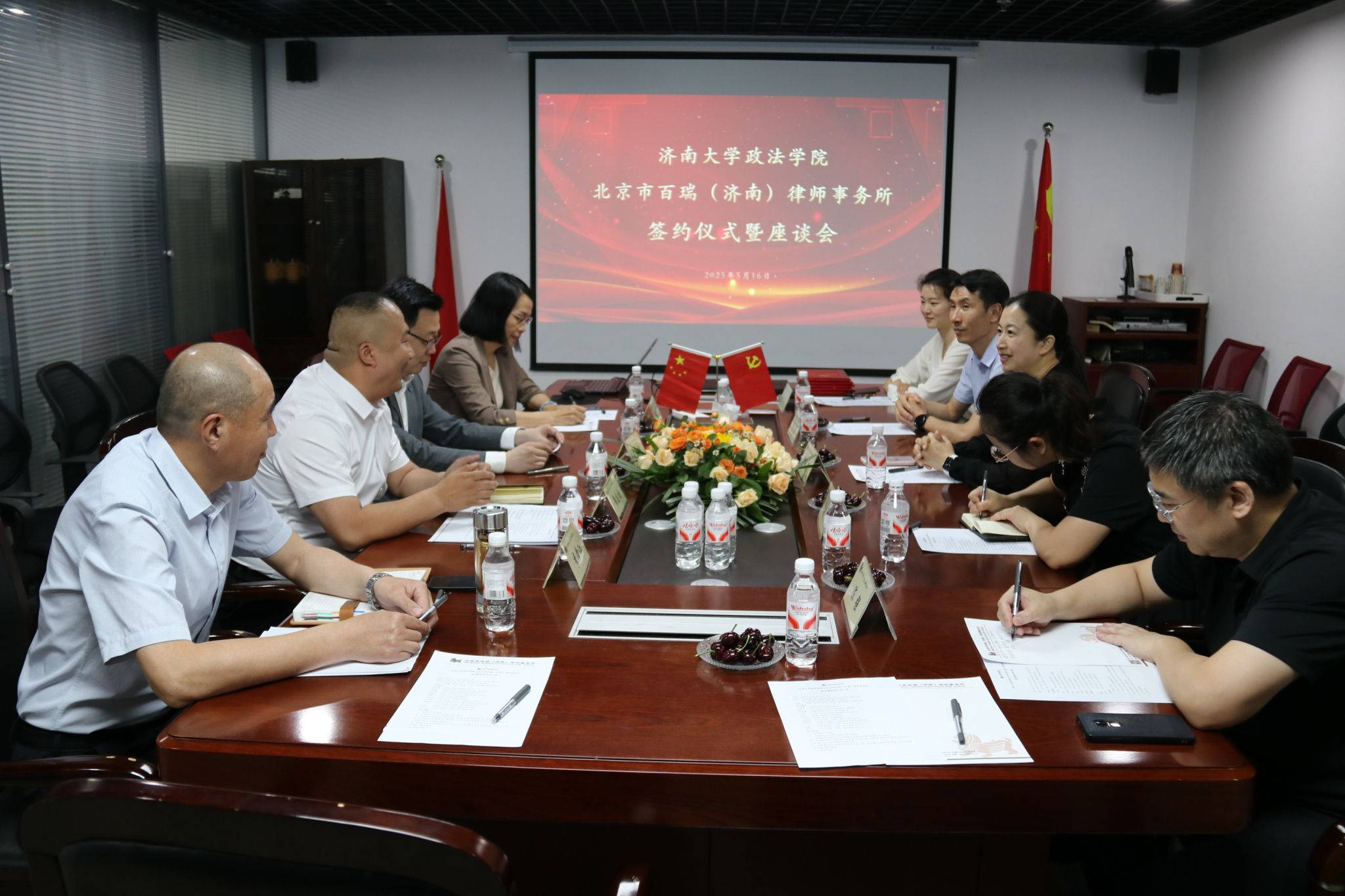 为进一步深化产教融合,促进法学教育与司法实践有机衔接,5月16日,济南大学政法学院党委书记李春慧,党委副书记、副院长李涛携学院教师代表赴北京市百瑞(济南)律师事务所开展访企拓岗专项活动。律所高级合伙人张蔚全程主持接待,双方就人才联合培养、实习就业基地建设等达成深度合作。