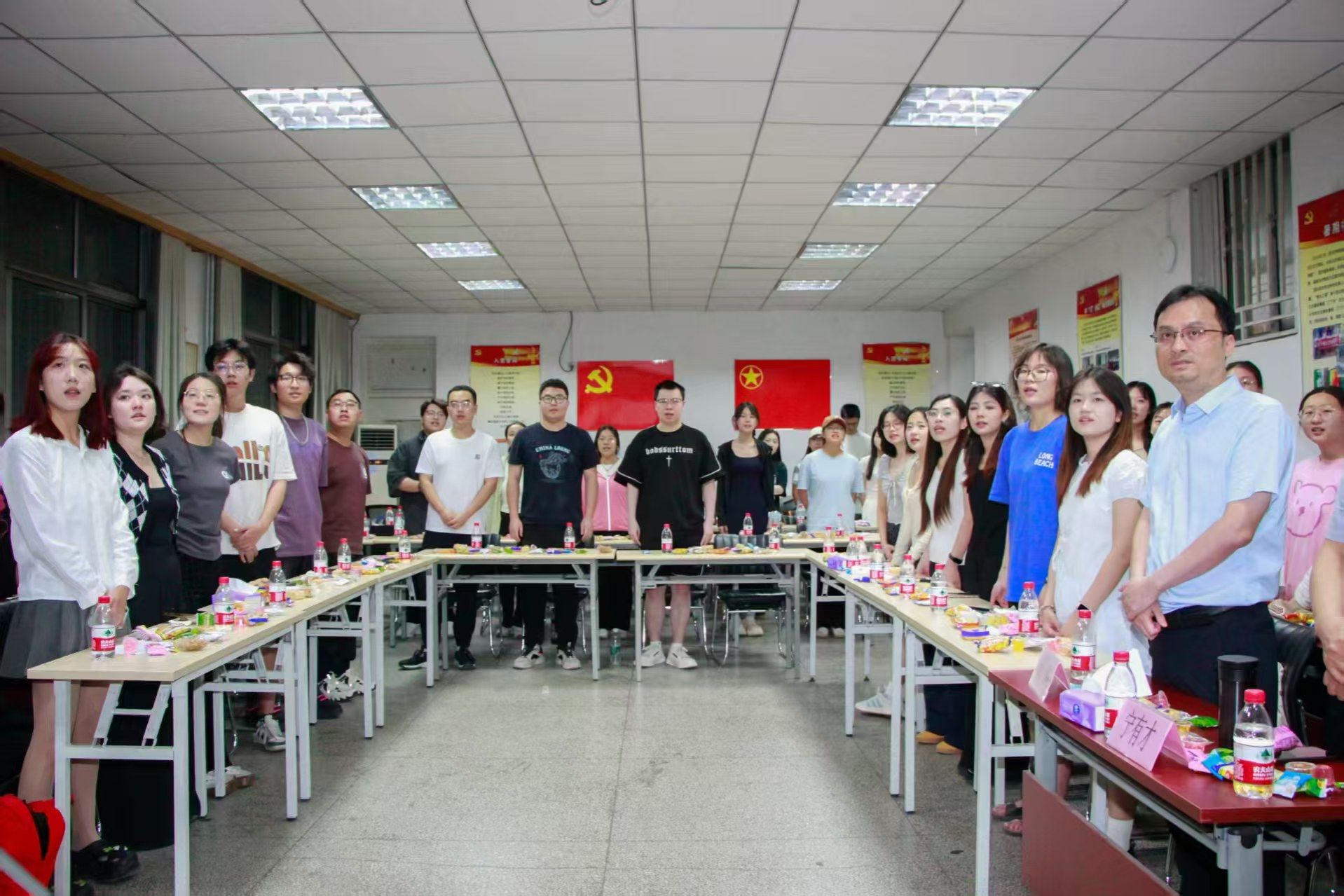 座谈会结束后进入欢送会环节,行管24级、23级和22级的同学带来了精彩的节目。歌曲《同桌的你》勾起了对校园青春岁月的回忆;《再见》表达了对离别的不舍之情;《一路生花》是对学长学姐们的真挚祝福;最后,全体师生合唱《你我同行》,这是属于济大人的旋律。