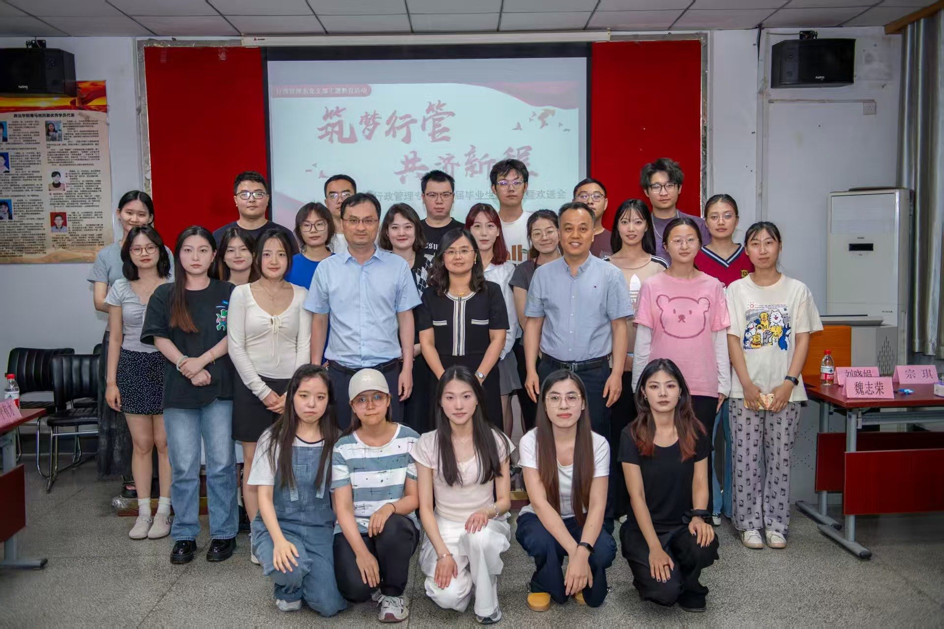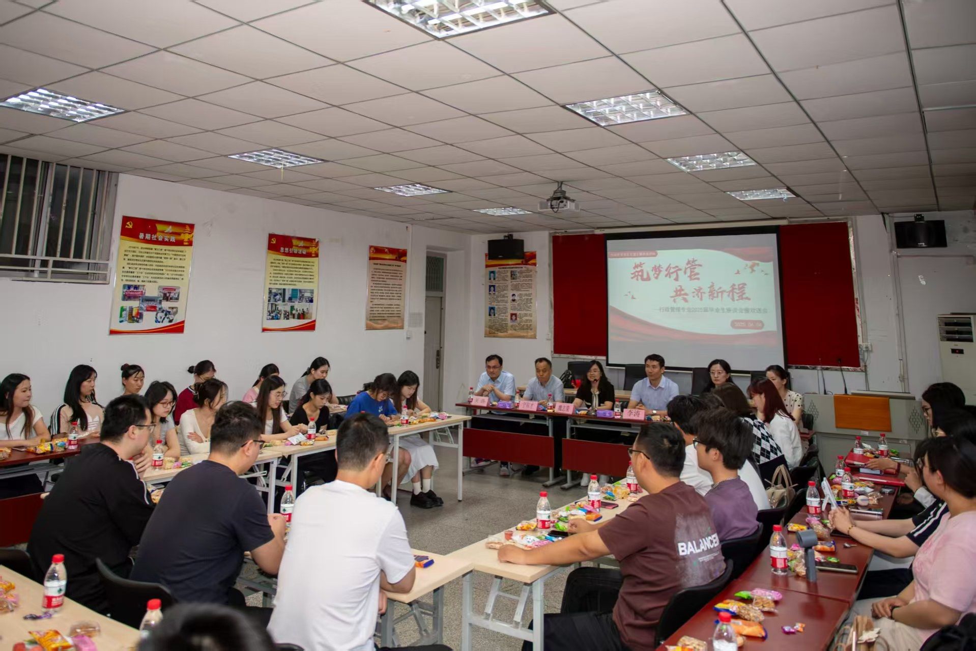时光的指针再次拨向盛夏,青春的航船即将驶离熟悉的港湾。6月4日晚,行政管理系与行政管理系党支部举办“筑梦行管,共济新程——行政管理专业2025届毕业生座谈会暨欢送会”。政法学院党委副书记、副院长李涛,团委书记刘晓娟,21级辅导员宗琪,行政管理系教师,21级同学及低年级部分同学参加。