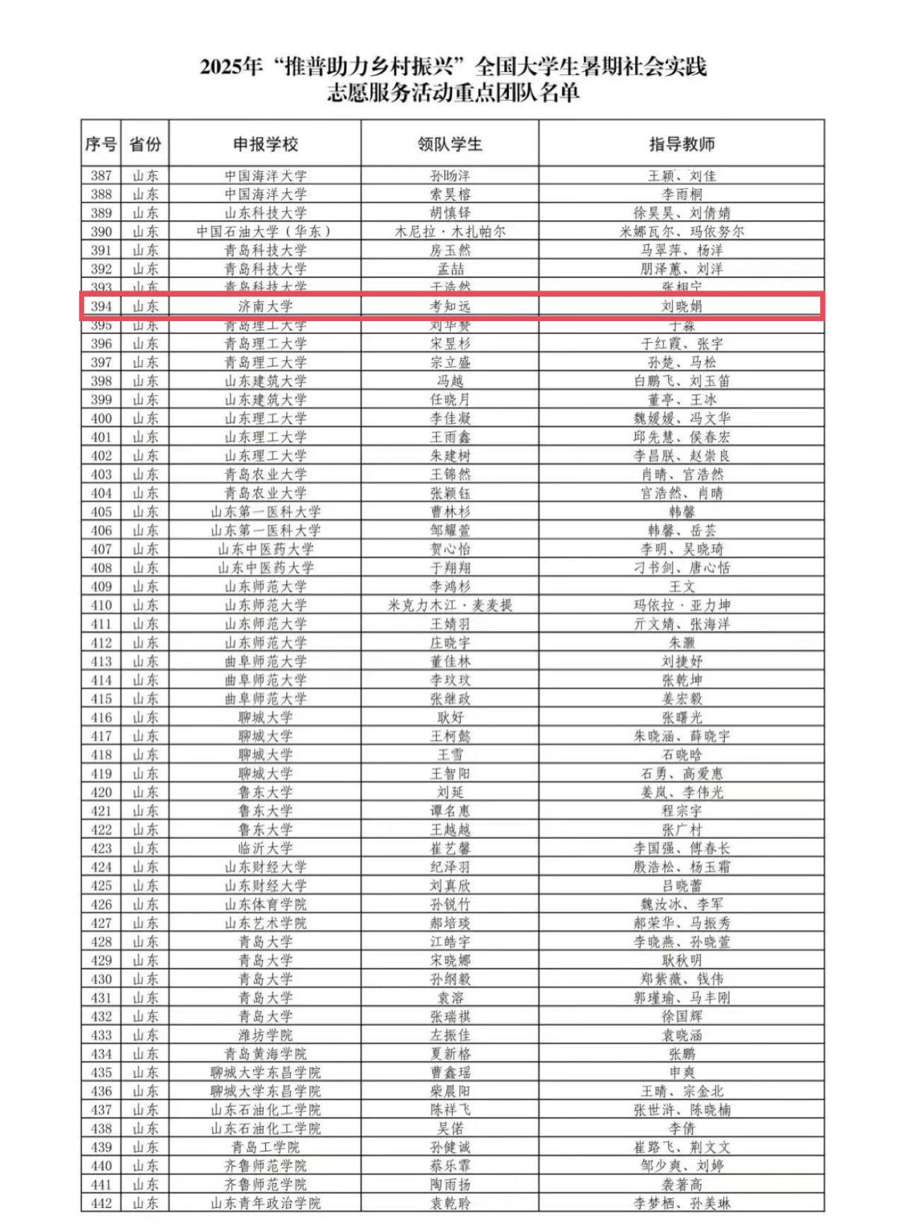 “推普助力乡村振兴”全国大学生暑期社会实践志愿服务活动旨在贯彻落实习近平总书记在全国教育大会上的重要讲话和关于语言文字的重要指示批示精神,落实《教育强国建设规划纲要(2024—2035年)》。该活动共有1680所高校的8013支团队、8万余名师生报名,经过国家语言文字推广基地组织专家的层层审议,最终确定1000支重点团队与1000支协同团队入选。济南大学政法学院“普韵新声”推普实践团入选重点团队。