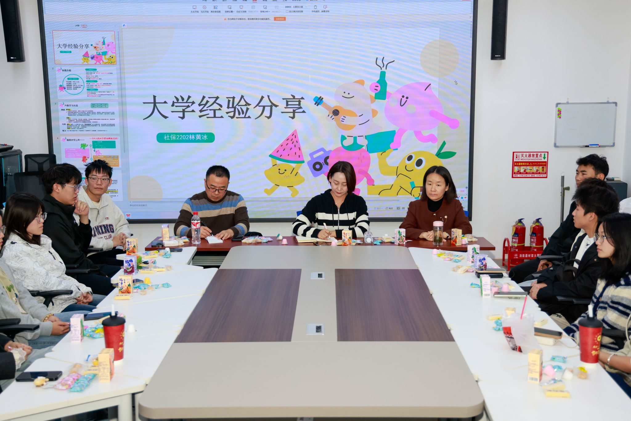 为搭建师生零距离沟通的平台,充分发挥优秀学生的示范引领作用,助力低年级同学明确学业目标、优化发展规划,我院人力资源与社会保障系党支部联合人力资源与社会保障系于2025年11月4日下午成功举办了“社保师生面对面”秋季第一期活动。此次活动由系党支部书记辛瑞萍主持,系主任张世青及教师代表张银共同参与,劳动与社会保障专业2022级、2023级、2024级学生共计近三十人积极与会。