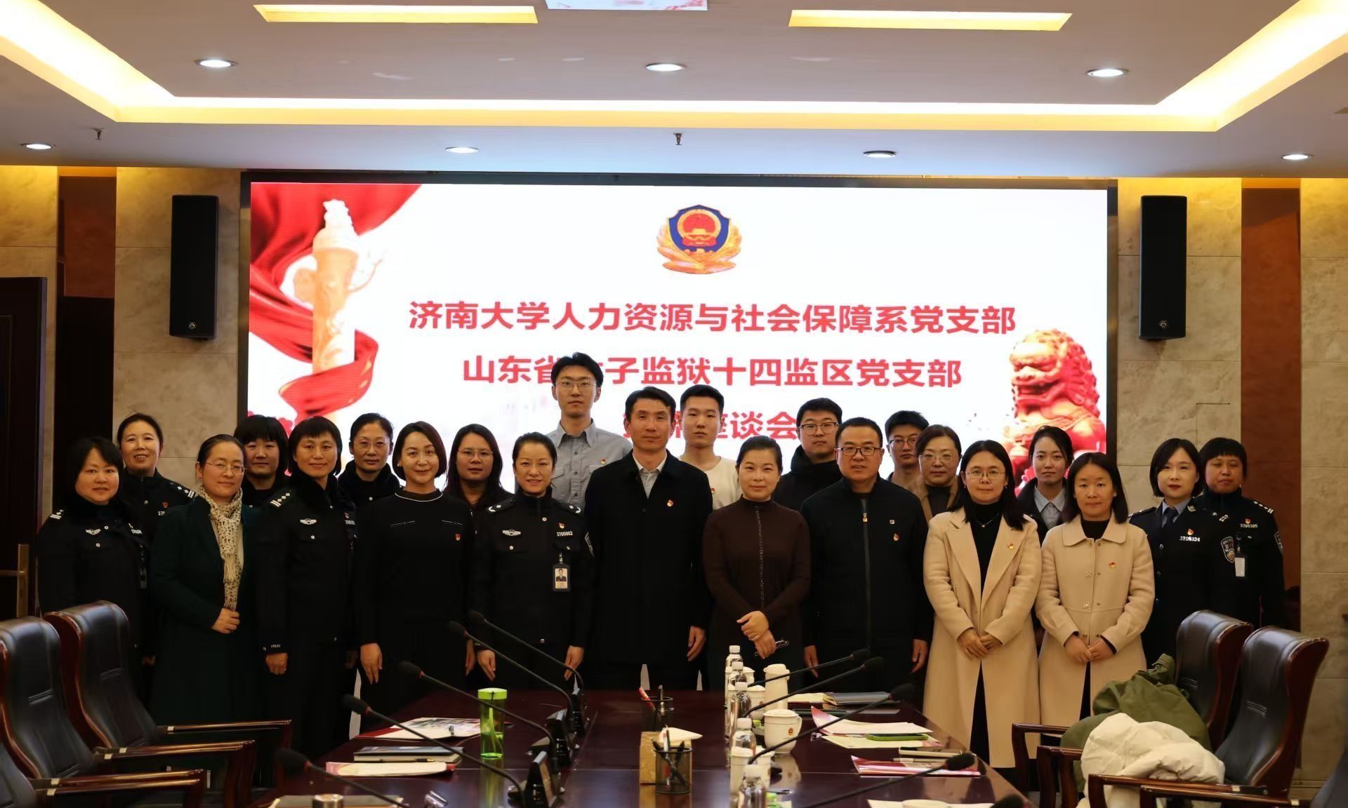 为推进基层党组织建设,以党建为纽带搭建合作桥梁,实现组织共建、资源共享、优势互补的良好格局,11月18日,人力资源与社会保障系党支部与山东省女子监狱十四监区党支部在山东省女子监狱举行了结对共建活动。济南大学政法学院党委副书记兼副院长李涛、副院长朱丽敏、人力资源与社会保障系党支部书记辛瑞萍及支部成员,与山东省女子监狱党委副书记兼政委王静、十四监区监区长兼党支部书记徐玉美及党支部成员代表等共同参加了此次活动,并签署了支部合作共建协议。