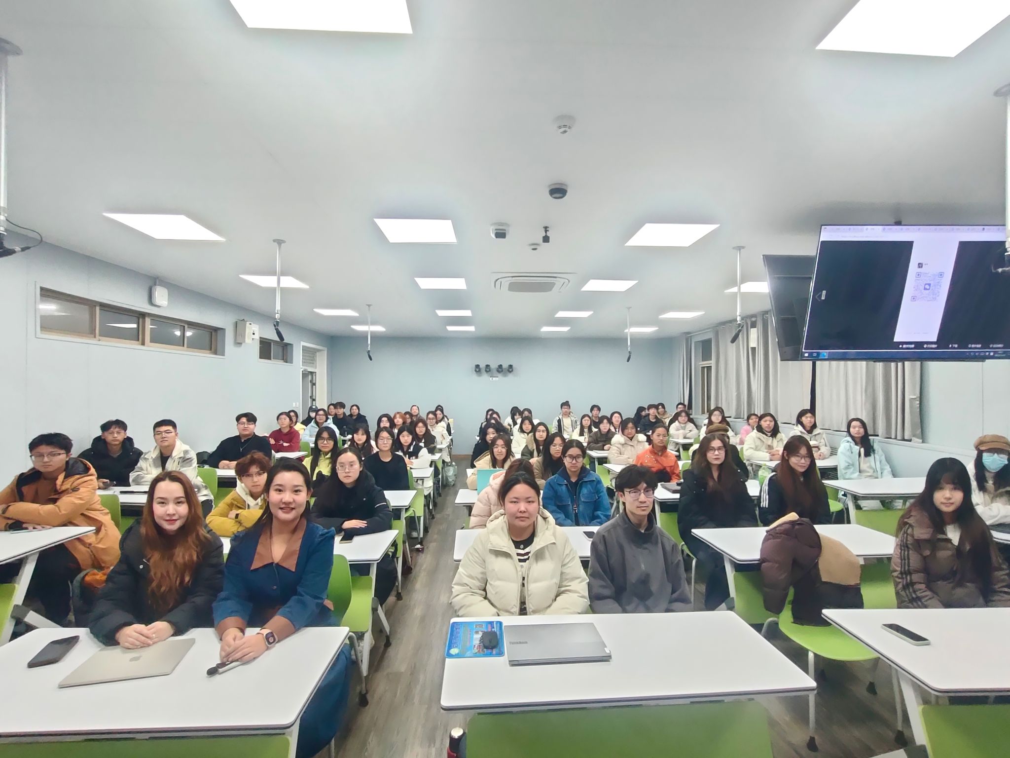 培训聚焦实战应用,以“理论+案例+互动”模式展开。李陈浩结合校园宣传场景,通过报告厅会议、校园活动等实拍案例,系统讲解构图逻辑、机位选择等实操技巧,针对感光度、白平衡、快门速度与光圈的核心参数搭配进行拆解演示,将抽象的摄影原理转化为可直接套用的实操方法。此外,他围绕“宣传摄影的沟通技巧”展开分享,强调拍摄需兼顾画面质量与现场秩序,尊重被拍摄对象,做到“技术服务于内容,细节彰显专业性”。互动答疑环节,针对“复杂光线环境曝光”“动态场景抓拍”等高频问题,李陈浩给出“优先锁定快门速度保障清晰度,灵活调整ISO与光圈,辅以后期精细化优化”的解决方案,精准回应同学们的实操困惑。