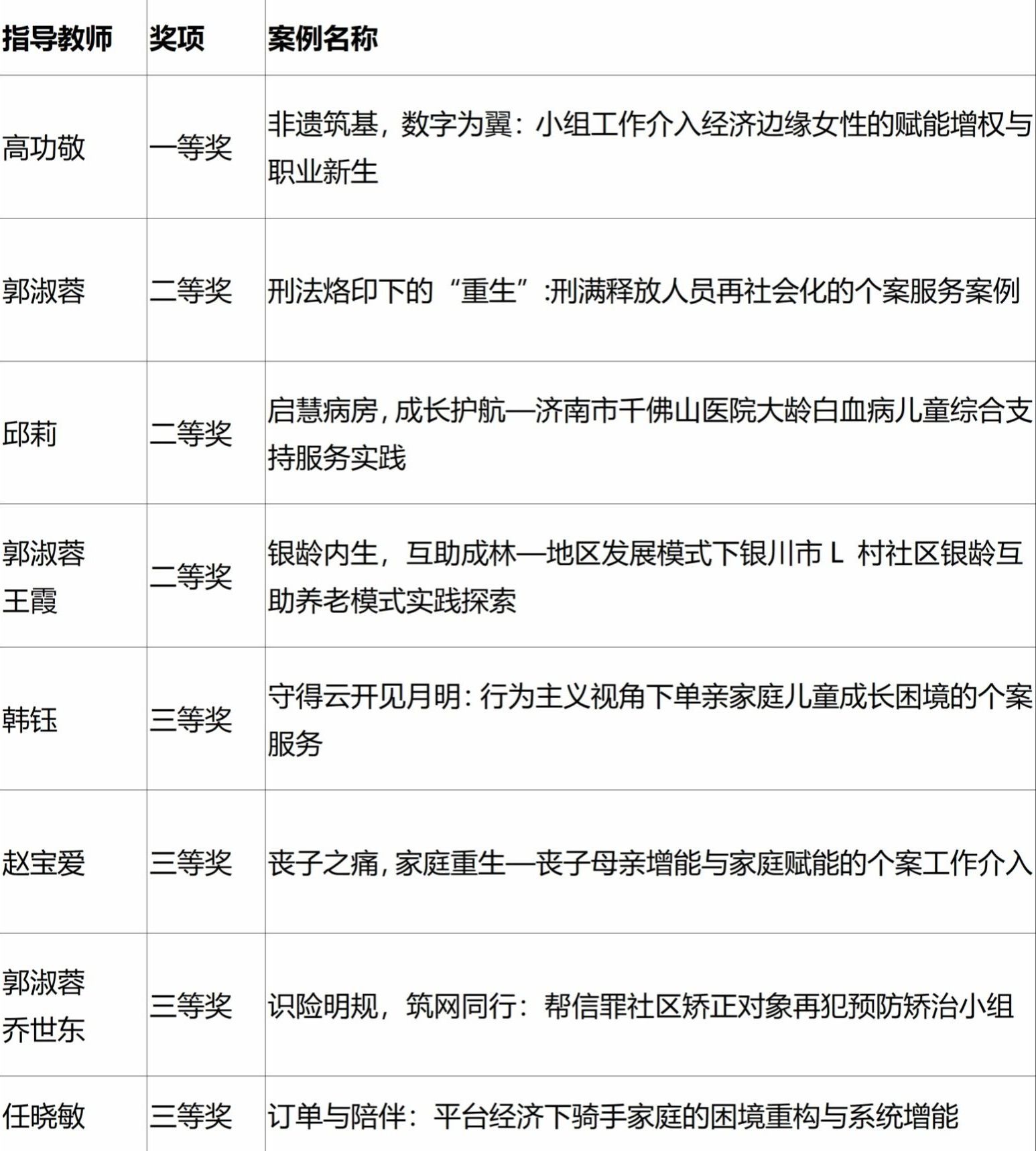 山东省高校第七届社会工作案例大赛济南大学获奖名单
