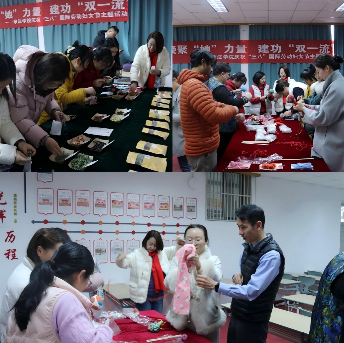 春风送暖,花香渐浓。为庆祝第116个国际劳动妇女节,丰富学院教职工的精神文化生活,3月8日上午9时,政法学院在3教218举办了以“凝聚‘她’力量,建功‘双一流’”为主题的庆祝活动。学院党委李春慧书记、高功敬院长等亲临现场,与广大教职工共度佳节。