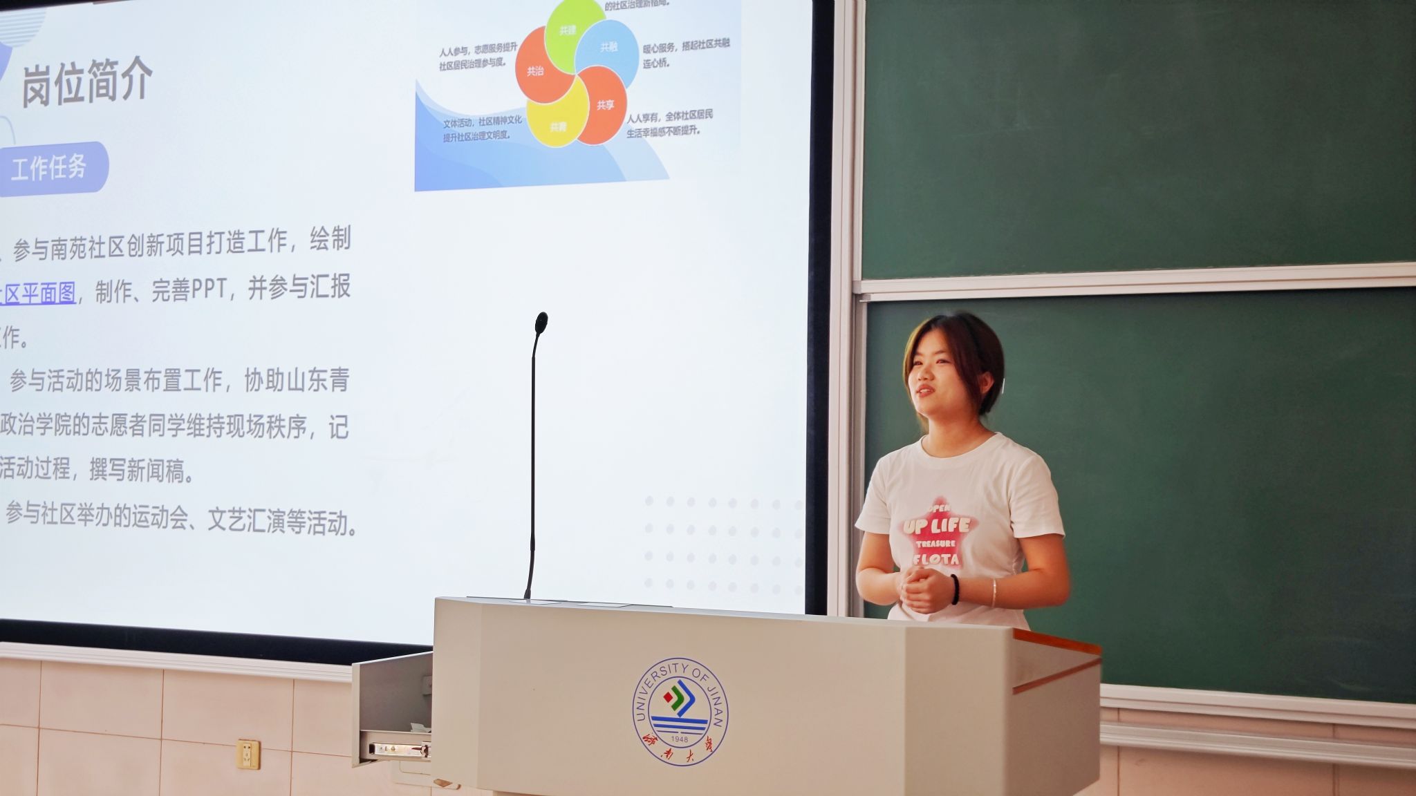 会上,首先由2021级学生代表高霞、陈星宇、孔谦三位同学作了实习经验分享。高霞同学通过个人经历向学弟学妹们叮嘱工作注意事项、学习导向以及人际交往方面的建议,希望同学们秉承严谨、认真、负责、耐心的态度投入实习,一以贯之,严于律己,展现出政法学子的优良风采。陈星宇同学介绍了市中区十六里河街道的基本情况以及工作任务,总结并分享自身的感悟收获,叮咛同学们要认真履职尽责,练就过硬本领。孔谦同学回顾了在王官庄街道的实习经历,分享社区电话回访、安全走访等方面的工作经验,建议大家秉持问题意识,积累案例素材,不虚此行,不负众望。