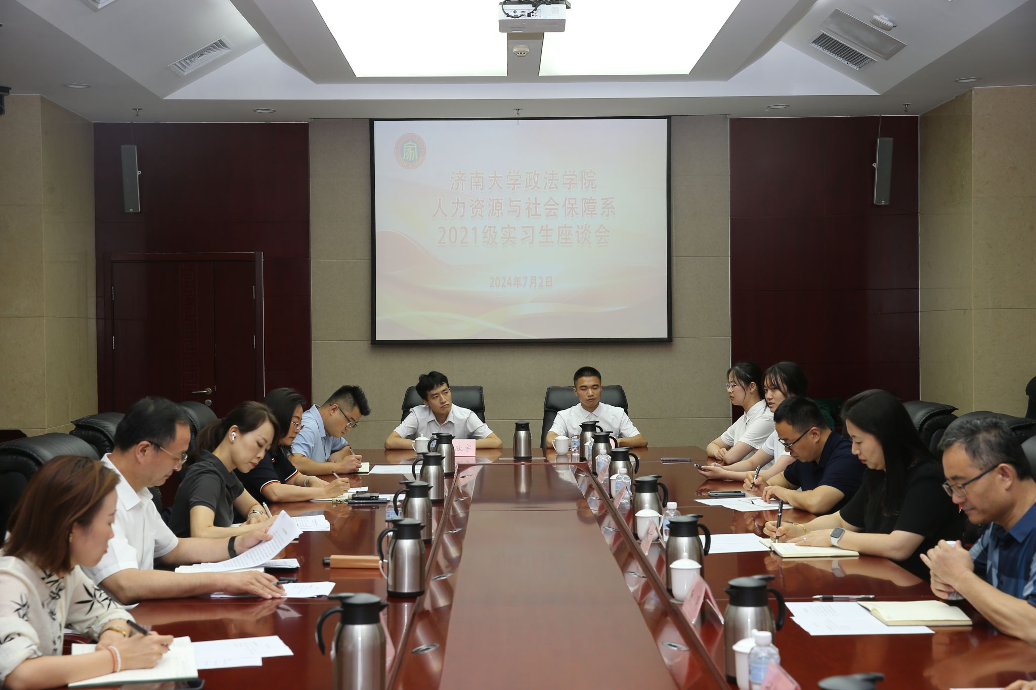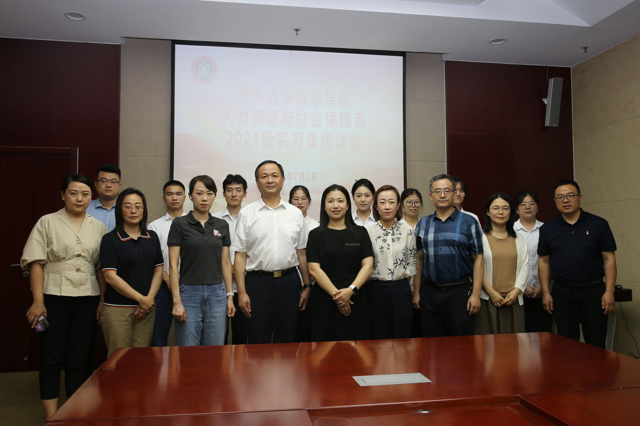 7月2日下午,我院参加了由济南市退役军人服务中心举办的人社系2021级实习生座谈会。政法学院党委书记李春慧,人社系教师杨风、张世青、刘艳丽以及济南市退役军人服务中心主任王绍虎等领导参加了座谈。