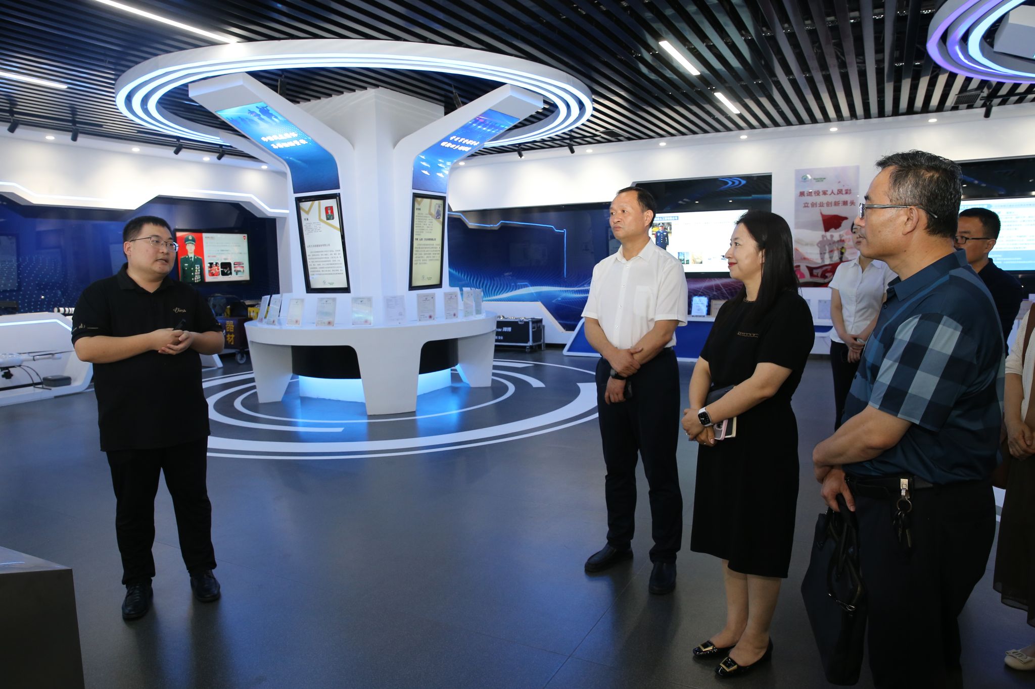 座谈会开始前,与会人员参观了济南市退役军人服务大厅、退役军人数字中心、退役军人就业创业孵化基地展厅及军休活动场馆。