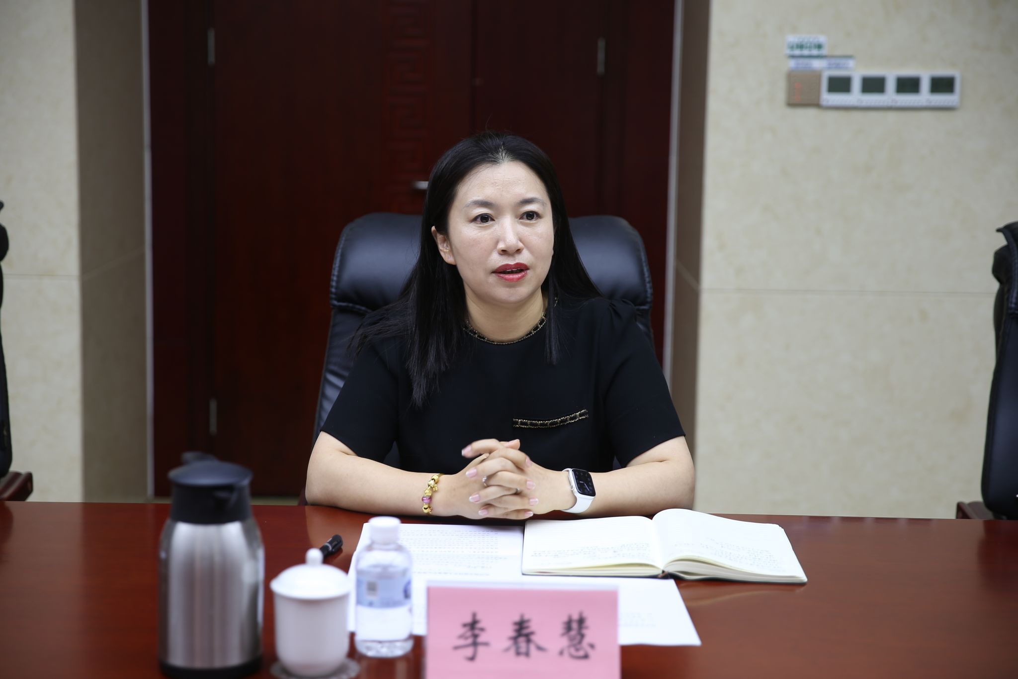 李春慧书记在发言中首先向济南市退役军人服务中心对政法学院教书育人、实习实践和科学研究等工作的大力支持与热情帮助表示了感谢。然后,李书记介绍了我院的学科建设、专业布局、师资建设、服务社会、实践教学等情况,表示学院长期深入实施“高水平人才培养工程”,高度重视学生的实践教学活动,全方位、多渠道、多举措做好人才培养各项工作,持续提升人才培养质量。李书记指出,政法学院将以此次座谈会为新的起点,进一步凝练学科专业优势,深挖潜力,加强资源共享,不断深化合作领域,完善合作机制,创新合作方式,提升合作水平,为推动全市退役军人事务工作贡献更多的“济大智慧”和“济大力量”。