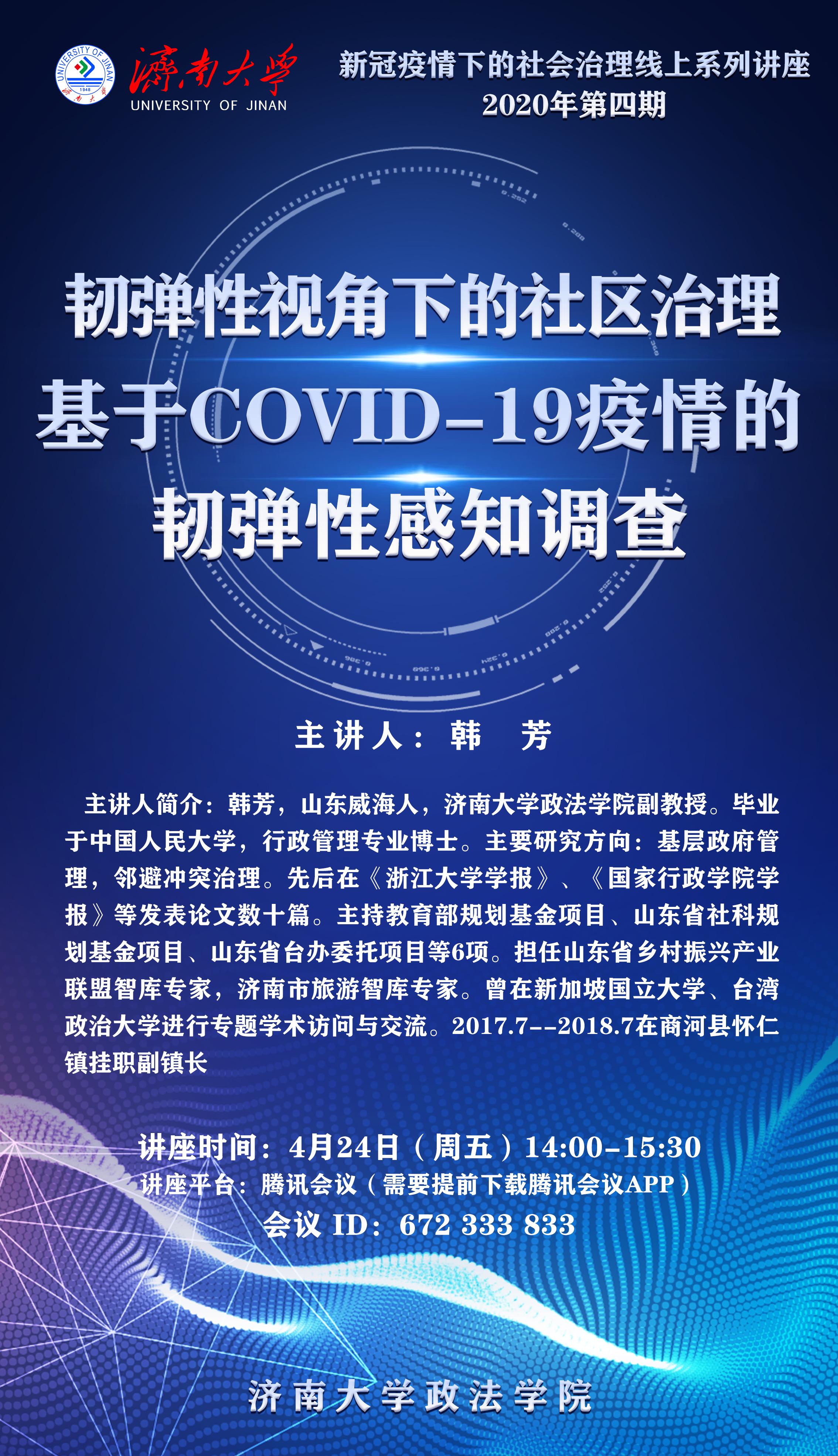 新冠疫情下的社会治理线上系列讲座(2020年第四期)韧弹性视角下的社区治理:基于COVID-19疫情的韧弹性感知调查