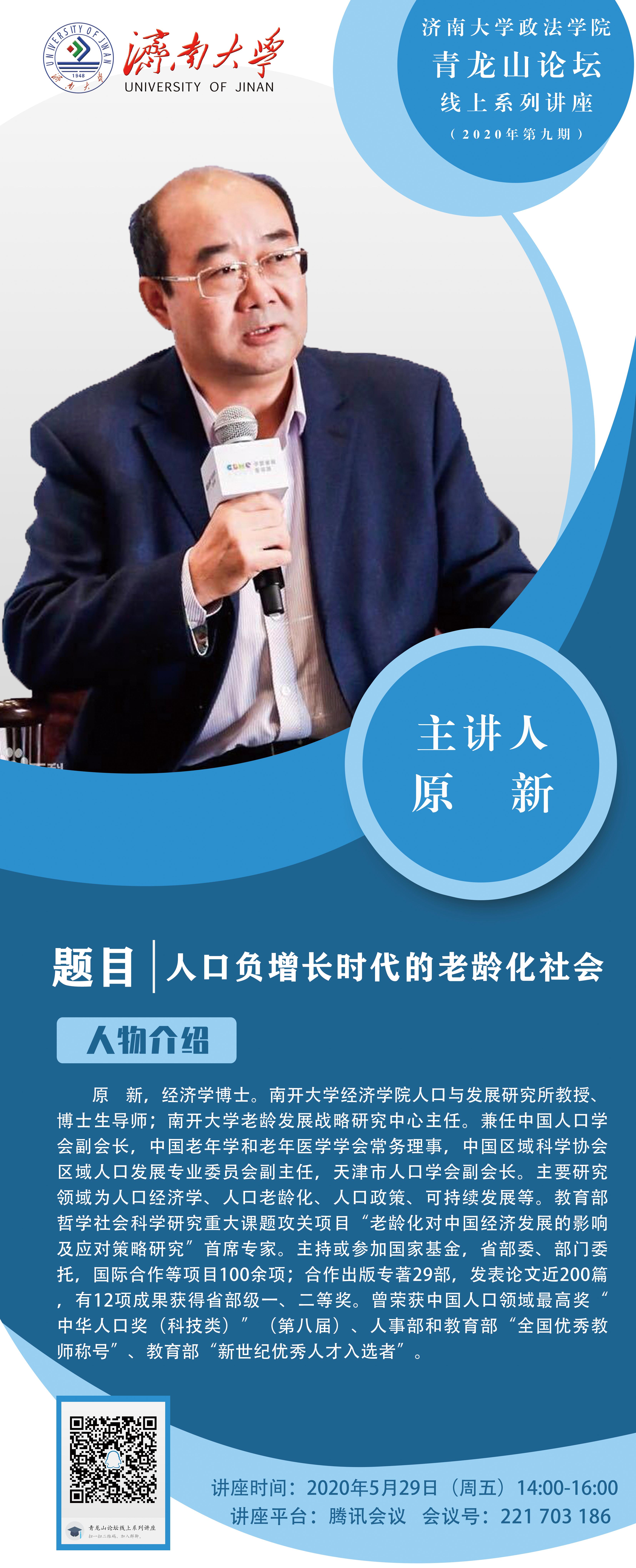 青龙山论坛——线上系列论坛(2020年第九期)人口负增长时代的老龄化社会