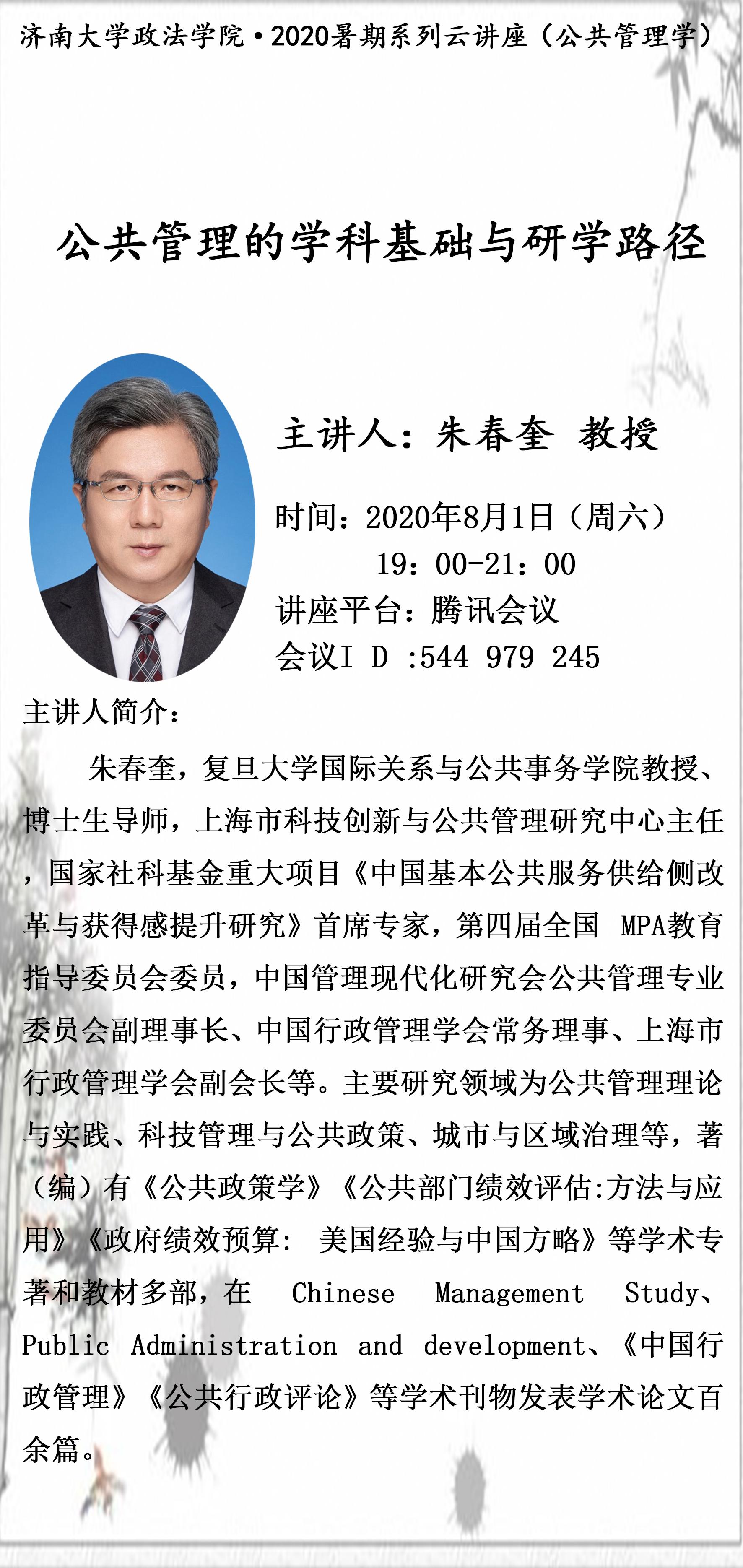 2020暑期系列云讲座--公共管理的学科基础与研学路径
