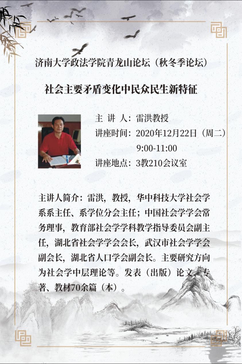 政法学院青龙山论坛(秋冬季论坛)--社会主要矛盾变化中民众民生新特征