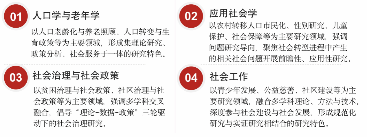 本学位点与国内外学术界有着广泛的学术交流,注重培养学生的研究能力、科研创新能力培养,高度重视社会调查研究方法实践能力训练。
