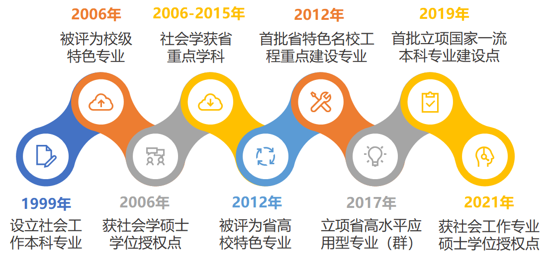 济南大学社会工作专业硕士学位所属的社会学学科2006年获社会学硕士学位授权点,2010年获社会学一级学科硕士学位授权点,2021年获批社会工作专业硕士(MSW)学位授权点,为目前山东省仅有的两个社会学学科专硕学硕齐全的高校之一。社会学学科曾连续两次获评山东省重点学科,为“十四五”期间济南大学重点建设学科、山东省博士点精准培育建设学科。社会工作专业相继入选山东省特色专业、山东省特色名校工程重点建设专业、山东省高水平应用型建设专业(群),并以A+级通过中国社会工作教育协会专业评估,2019年入选首批国家级一流本科专业建设点。2024年1月,社会学系社会工作专业教研室获批首批山东省普通本科高等学校示范性基层教学组织;2月,社会工作学院获批山东省专业特色学院。