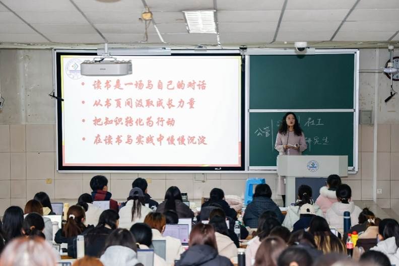 2025年10月26日上午,政法学院读书分享交流会在2教204成功举办。本次读书分享交流会邀请政法学院团委书记刘晓娟副教授担任主讲人,政法学院各年级、专业研究生、本科生百余人现场参与,本次读书分享交流会围绕“读书与人生成长”主题展开交流。