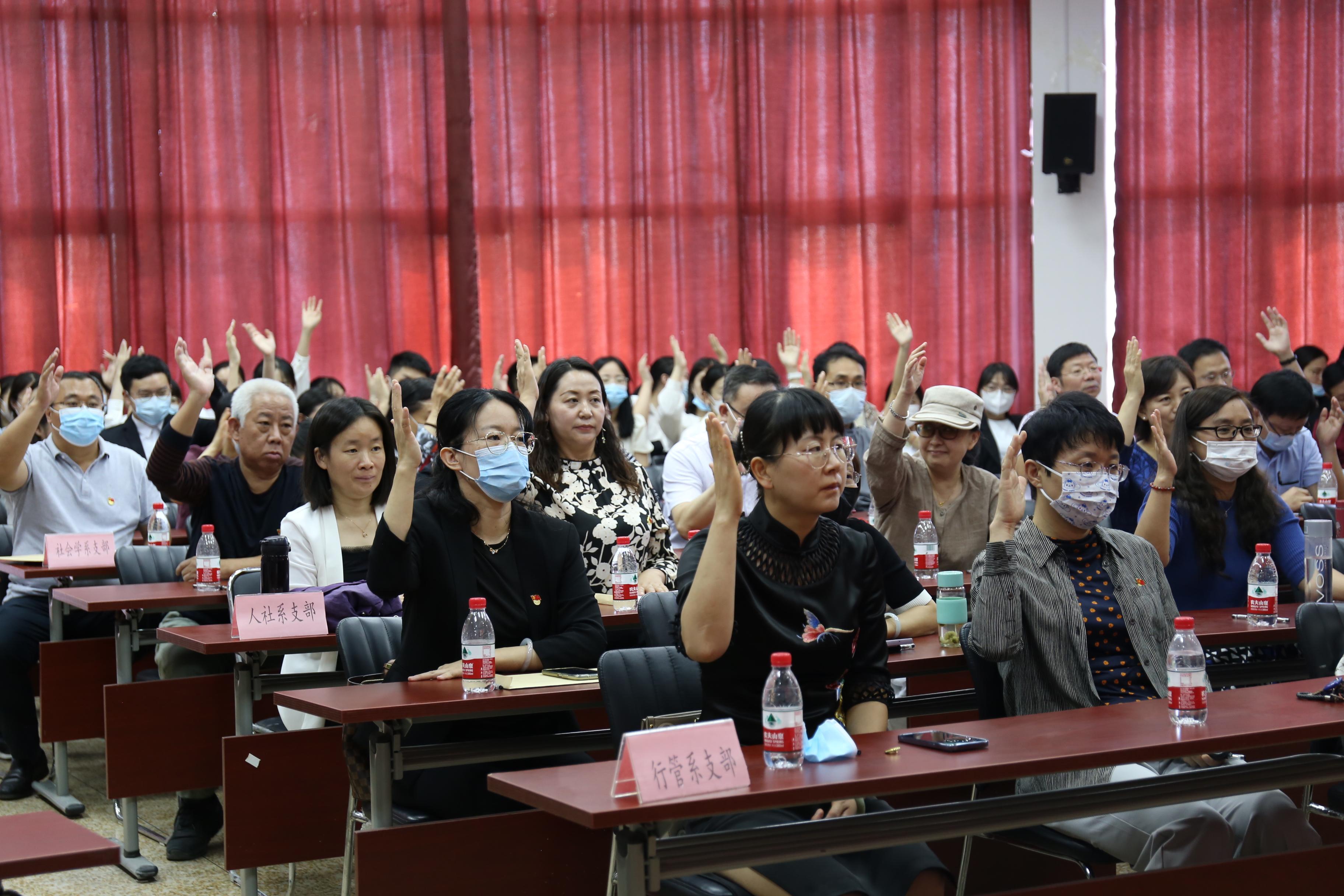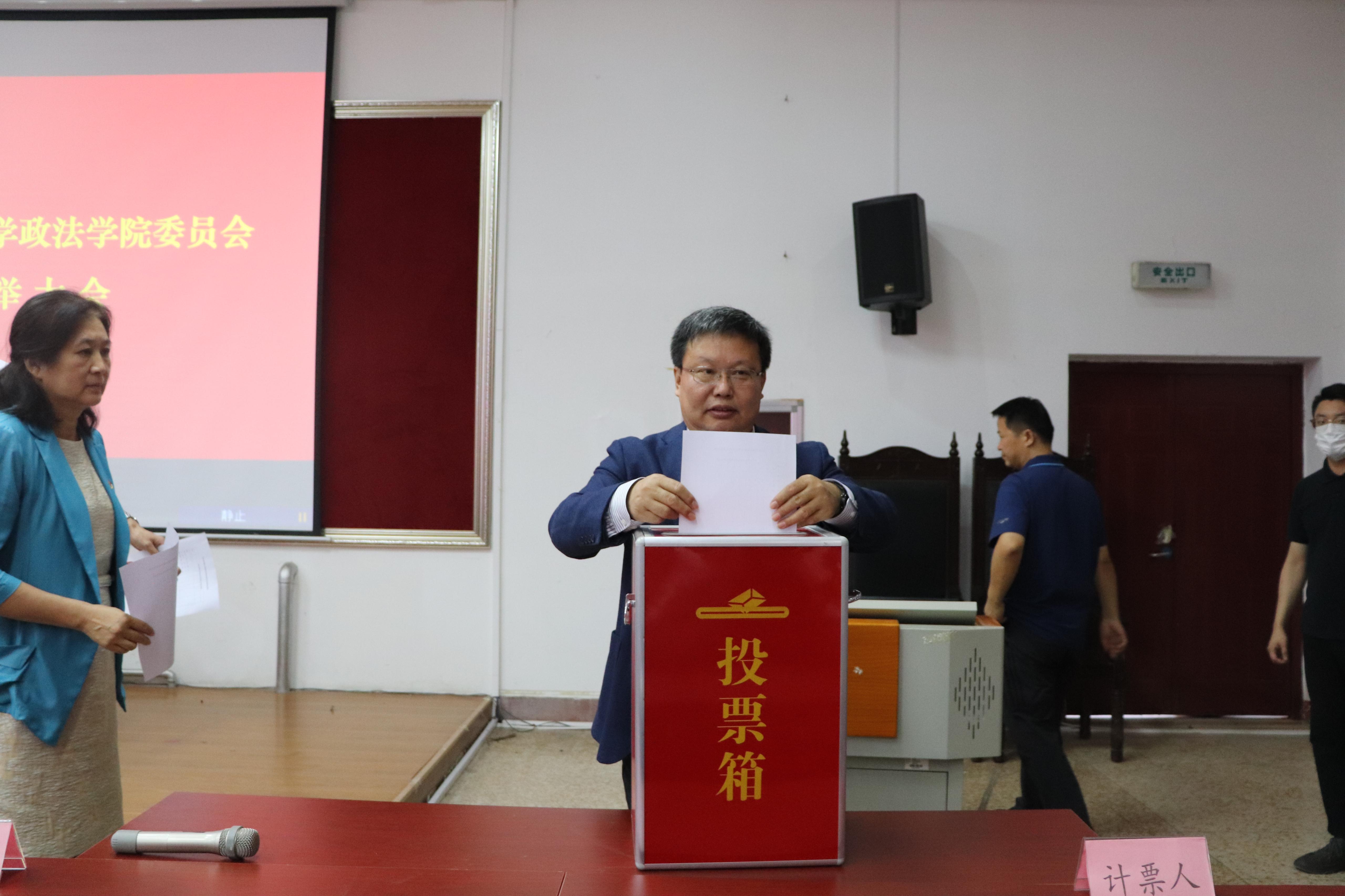 大会严格按照《中国共产党章程》和《中共基层组织选举工作暂行条例》的规定,首先分支部进行差额预选,随后大会采取无记名投票和等额选举方式,选举徐庆国、高功敬、国迎春、李涛、朱丽敏等五名同志为政法学院新一届委员会委员。