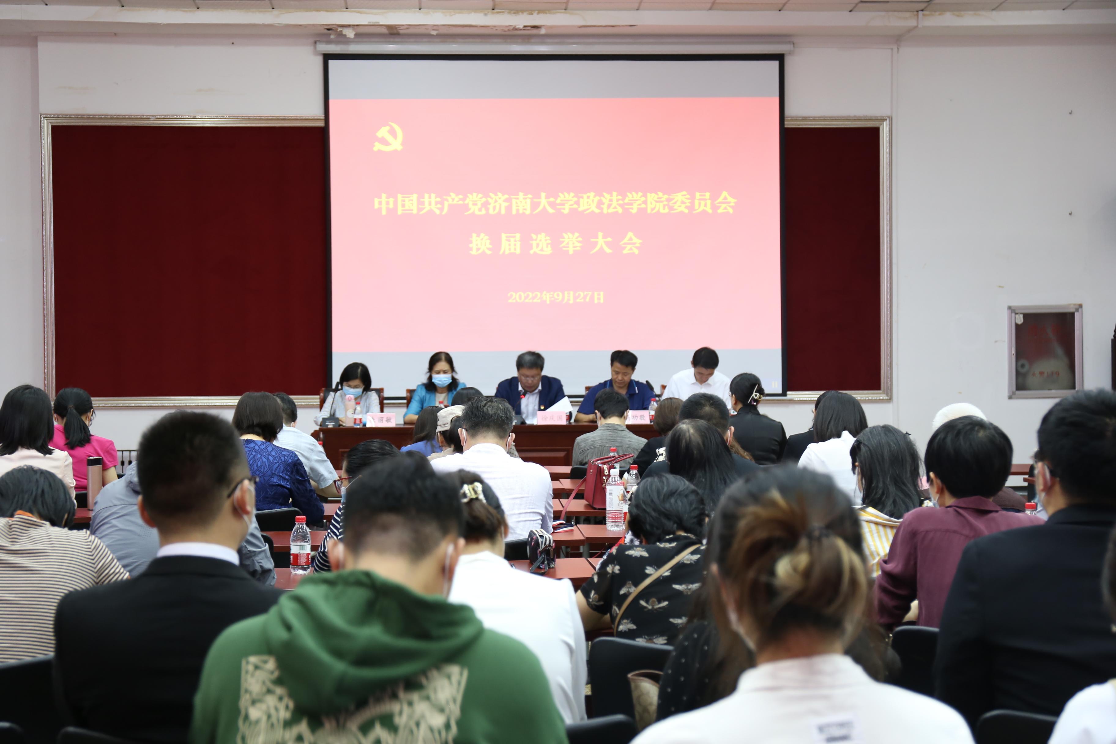 在喜迎党的二十大召开,学校第四次党代会胜利闭幕之际,按照学校党委统一部署,9月27日下午,中国共产党济南大学政法学院委员会换届选举大会在四教模拟法庭举行。政法学院党委书记徐庆国,院长高功敬,正处级组织员国迎春,党委副书记、副院长李涛,院长助理朱丽敏以及124名党员师生参加大会。大会第一阶段由高功敬同志主持,第二阶段由徐庆国同志主持。