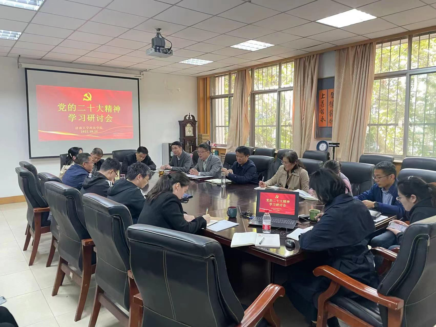 徐庆国书记领学《中国共产党第二十次全国代表大会关于十九届中央委员会报告的决议》,他表示,党的二十大是在全党全国各族人民迈上全面建设社会主义现代化国家新征程、向第二个百年奋斗目标进军的关键时刻召开的一次十分重要的大会,意义重大、影响深远。习近平总书记所作的报告高屋建瓴、博大精深、催人奋进,为我们指明了前进方向、提供了根本遵循。学院坚持把学习党的二十大精神作为当前首要政治任务,全院师生要掀起学习宣传贯彻党的二十大精神热潮,做到真学真信真悟真用,用党的二十大精神统一思想、凝聚力量、统领行动,深刻领悟“两个确立”的决定性意义,增强“四个意识”、坚定“四个自信”、做到“两个维护”。与会师生依次发言,分享学习党的二十大精神的感受和体会。学院党委副书记、副院长李涛说到,党的二十大报告中,习近平总书记对青年和青年工作的重要阐述,内涵丰富、寓意深刻,为做好新时代党的青年工作指明了前进方向、提供了根本遵循。行政管理系党支部书记韩慧表示将认真学习和贯彻党的二十大精神,准确把握精神实质,深刻领悟丰富内涵,将学习成效转化为做好各项工作的强大动力,努力提高思想高度,情感忠诚度和行动力度。党的二十大精神宣讲团成员唐斌尧分享了自己对“中国式现代化”的理解,表示要将党的二十大精神转化成一系列有“温度”和“青春味”的思想政治课,打通青年理论武装“最后一公里”,坚守立德树人根本任务,坚持为党育人、为国育才,把党的二十大精神真正落实到人才培养、科学研究、社会服务等工作中。大家一致认为,党的二十大报告是马克思主义中国化时代化最新成果,是全面建设社会主义现代化国家、全面推进中华民族伟大复兴的行动指南、纲领性文件和政治宣言,对于推动全党进一步统一思想、统一意志、统一行动,团结带领全国各族人民谱写新时代中国特色社会主义更加绚丽的华章具有重大政治意义、重要现实意义和深远历史意义。