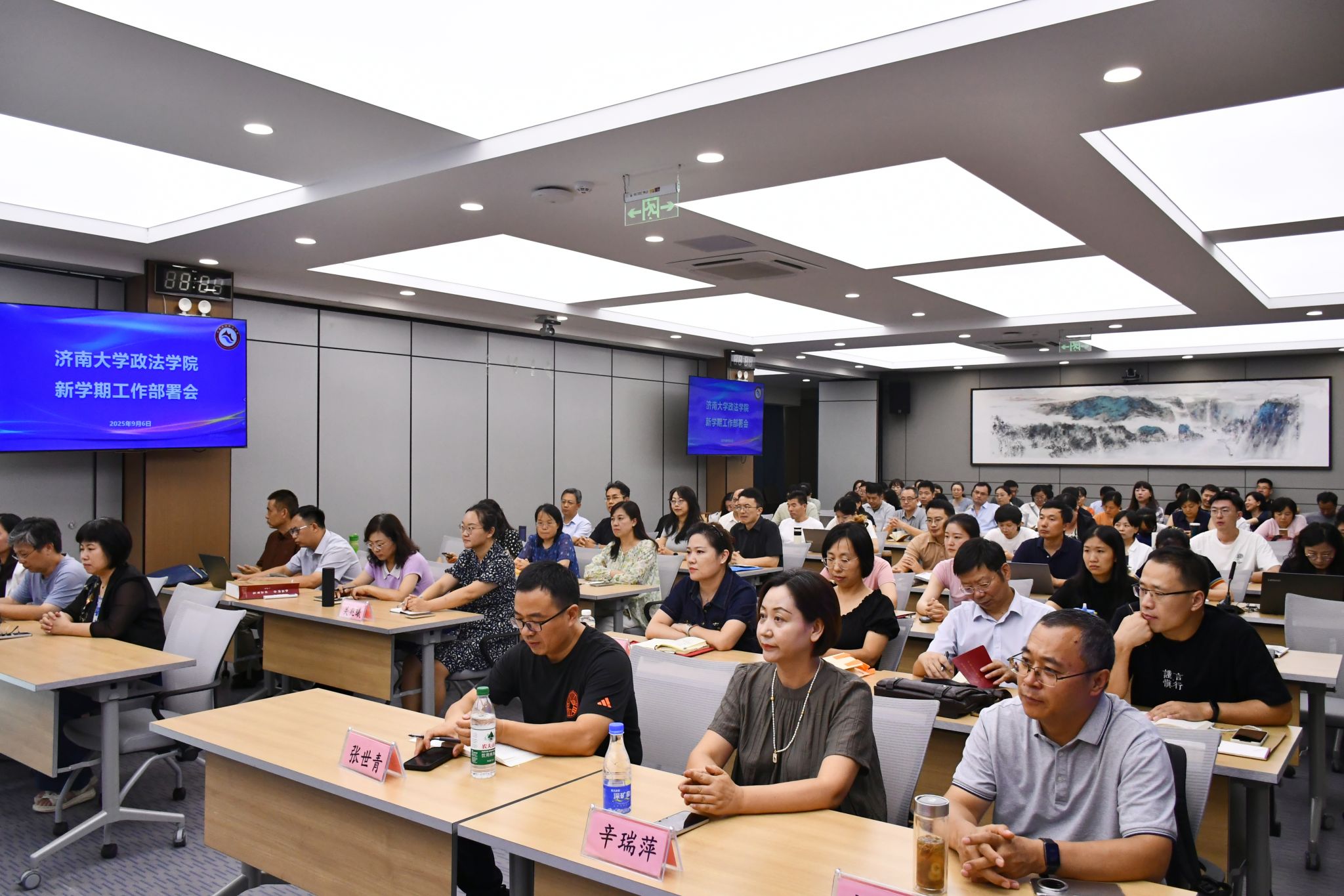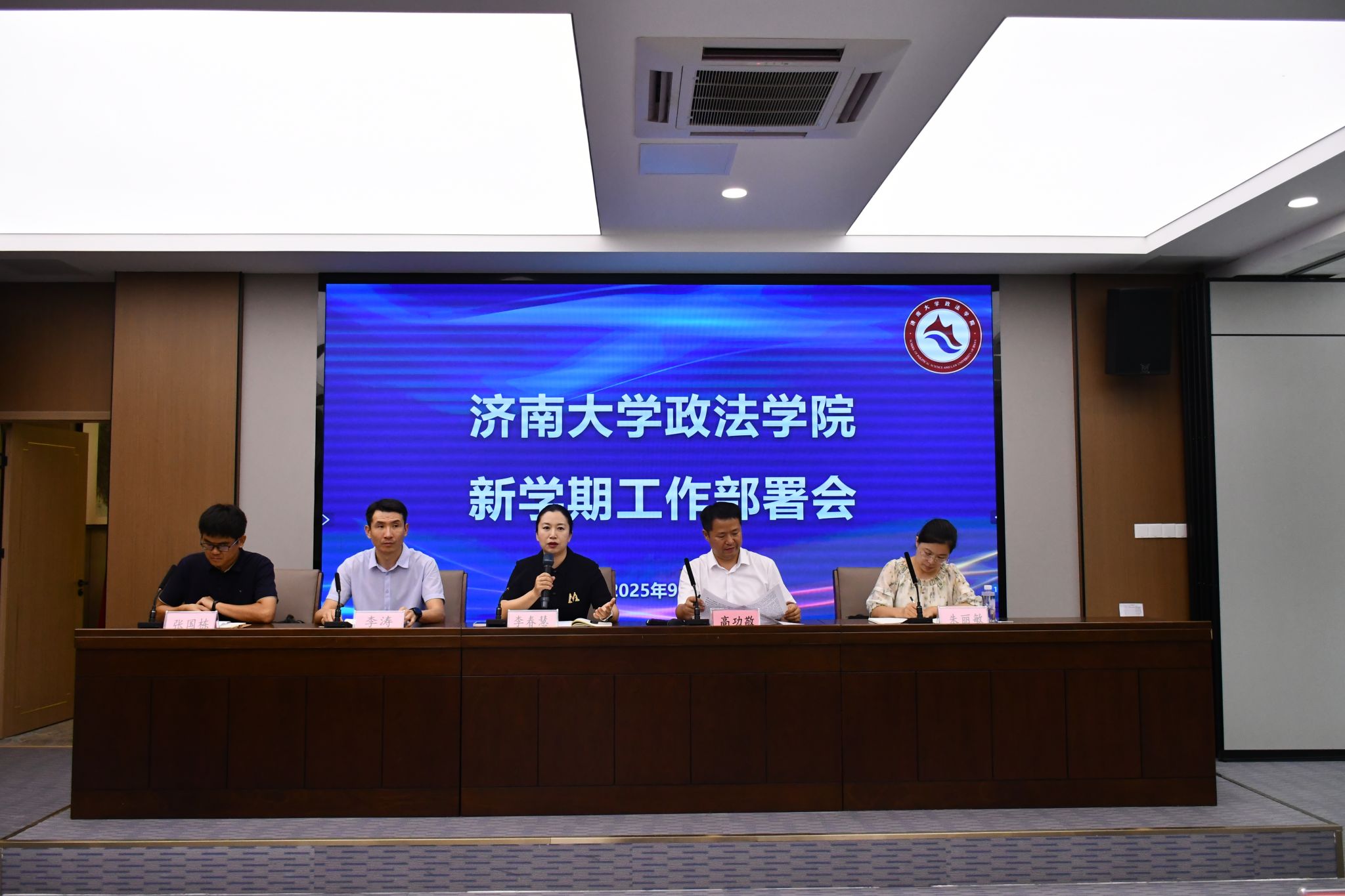 院长高功敬传达了校长刘宗明所作的2025年下半年学校重点工作部署要求,详细解读了学校人才培养、学科建设、科学研究、师资队伍建设、社会服务和开放办学、管理服务保障、校园安全等7个方面的工作部署,并结合学院实际部署新学期重点工作。他强调,全院教职工要认真贯彻落实学校会议精神,要坚持问题导向、目标导向和结果导向,强化责任担当,扎实推进学院各项工作任务落实,持续做好高级别项目、高水平成果、高层次平台培育建设,推动学院事业发展再上新台阶。