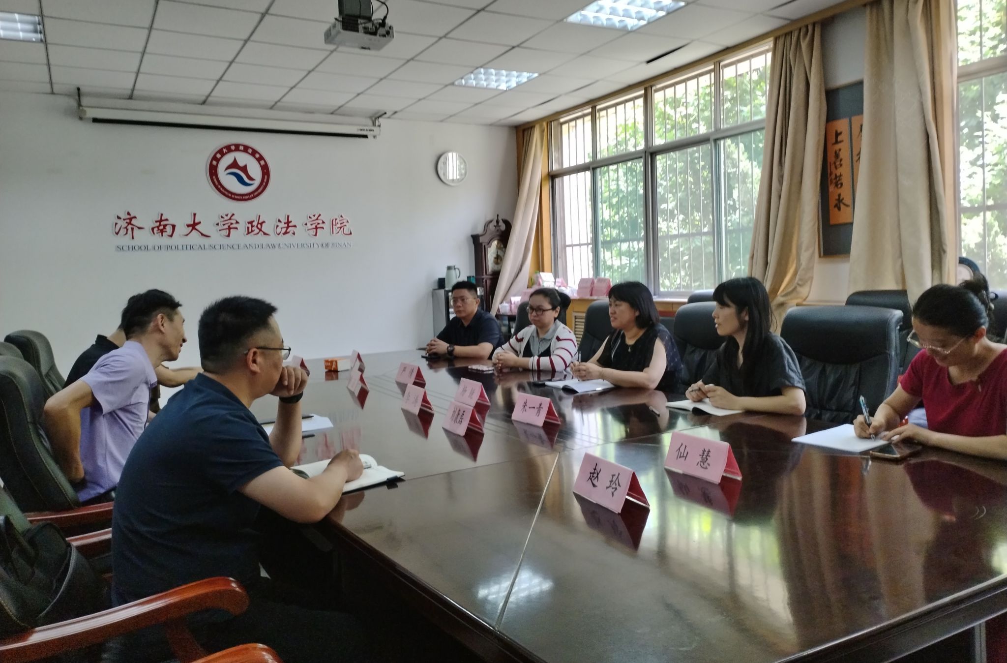 为深化法学专业建设经验互鉴,推动法学教育高质量发展,6月10日,集美大学诚毅学院人文科学系主任杨锐率调研团队,联合山东政法学院经济贸易法学院仙慧老师,到访济南大学政法学院开展法学专业专题调研。济南大学政法学院高度重视此次交流,副书记李涛、法学系主任刘康磊、研究生管理办公室主任陈强、教学主任关兆曦及专任教师赵玲等参与座谈,双方围绕法学专业建设核心议题展开深入交流。