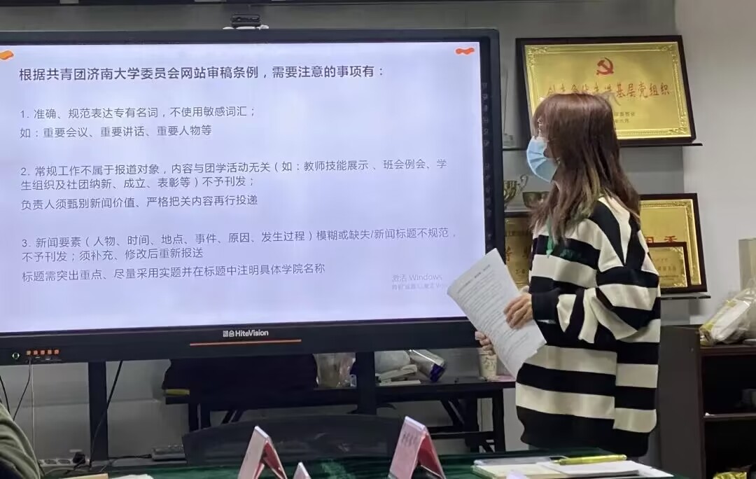 培训会上,学生会融媒体中心娄裕婷结合新闻写作知识和工作经验,从新闻的基本特点、构成要素、基本框架以及撰写新闻的注意事项四个方面详细介绍了新闻写作的要求,并对目前学院新闻撰写过程中存在的问题进行讲解,通过新闻实例帮助大家进一步了解和掌握新闻写作的方法技巧。随后,融媒体中心马心悦根据前期的工作经验,从网站投稿注意事项和重点词语规范表达两个方面对新闻投稿事项进行了分析。最后,学生会主席团成员骆凯霖对本次新闻写作培训会进行总结,强调新闻撰写的时效性和严谨性要求,要求学生会成员紧跟时事,提高政治意识。
