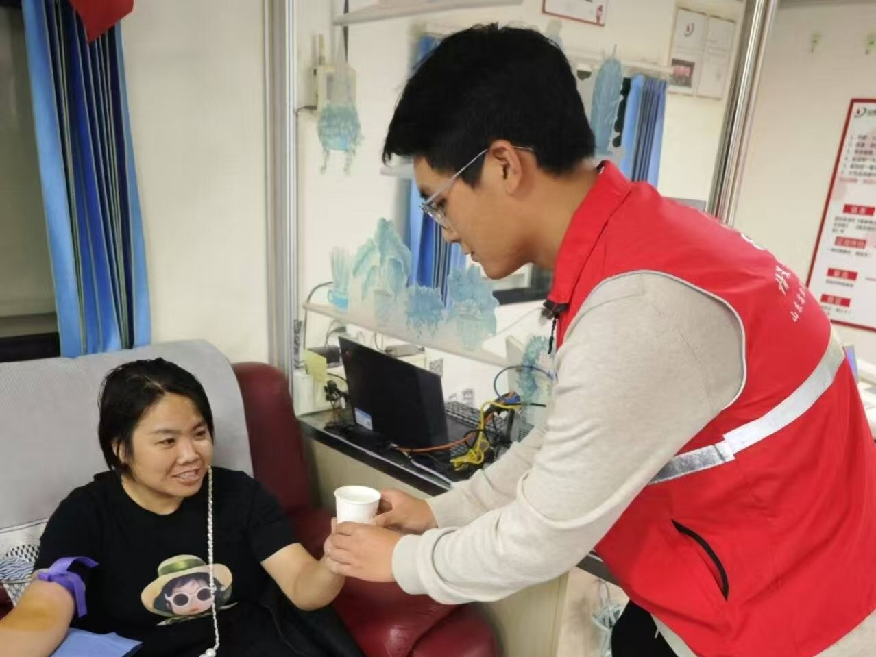 活动现场,志愿者们分工明确,各司其职。他们面带微笑,热情接待每一位献血者,耐心解答他们的疑问,引导他们填写献血登记表。在献血区,志愿者们手持血压计,细心地为献血者测量血压;在血型检测区,他们认真地核对献血者的信息,协助工作人员进行血型检测;在休息区,他们为献血者递上一杯温水,送上温暖的微笑和鼓励的话语,让献血者感受到来自社会的关爱和温暖。空气中弥漫着一种温暖而坚定的氛围,志愿者们的热情和奉献感染着在场的每一个人。他们的行动不仅为献血者提供了极大的便利,更传递了积极向上、无私奉献的精神。