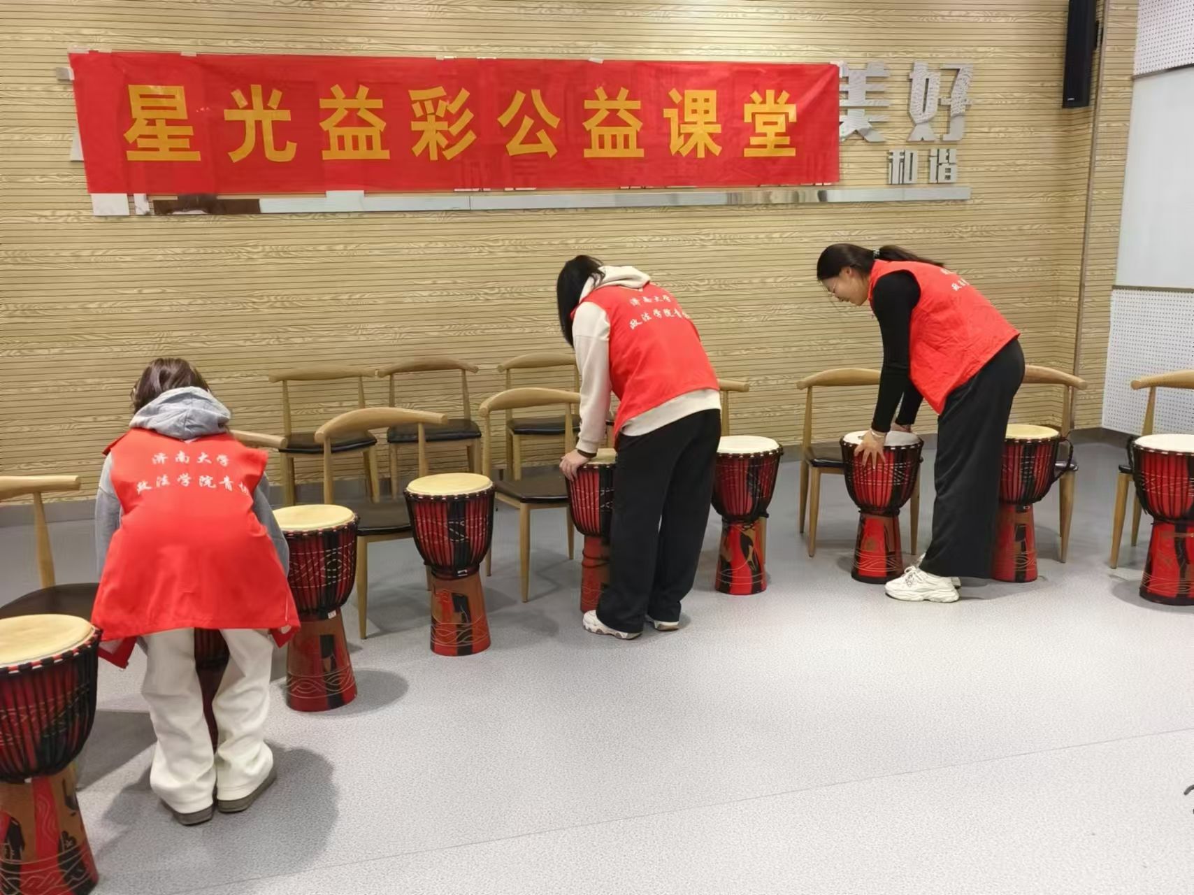 “鼓动心声,共筑爱心桥梁。”为了锻炼慧爱基地的残疾人朋友们的肢体协调能力,丰富他们的生活,2024年11月2日,政法学院阳光先锋青年志愿者协会志愿者前往济南市慧爱残疾人服务中心开展非洲鼓志愿服务活动,给他们带去了不一样的文化体验。