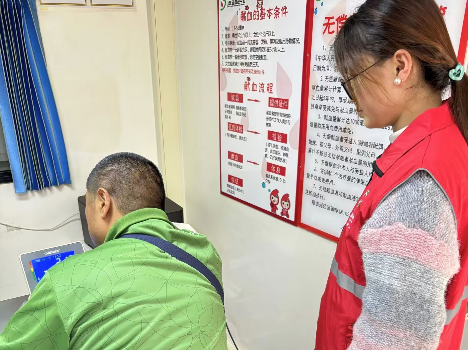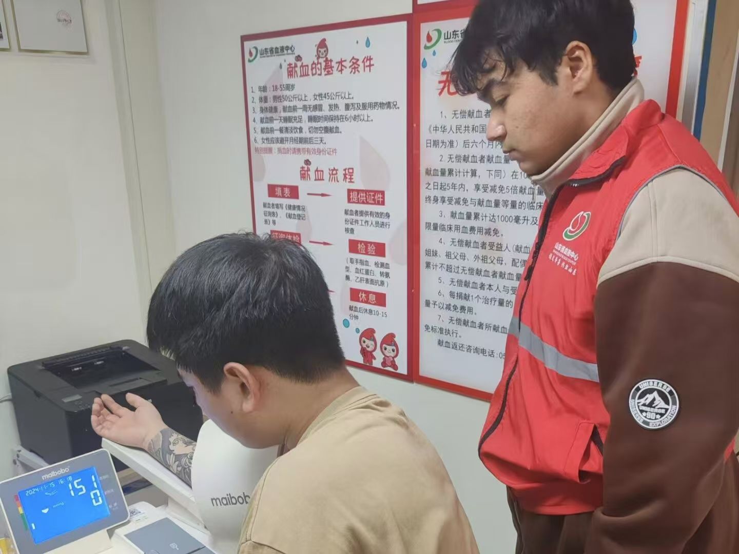 活动当天,志愿者们身着统一的服装,早早地抵达了山东省血液中心献血站,以饱满的热情投入到服务工作中。面对每一位前来献血的爱心人士,志愿者们耐心细致地提供帮助,协助他们完成登记手续,测量血压,确保献血过程的安全与舒适。为了让献血者们在献血后能够迅速恢复体力,志愿者们还精心准备了糖水和面包等食品。他们的每一个举动都充满了对献血者的关怀与尊重,让献血者们在安全舒适的环境中完成了献血活动,同时也感受到了来自社会的关爱与温暖。热血的传递,不仅是一份对生命的尊重与守护,更是一份对社会责任的担当与践行。